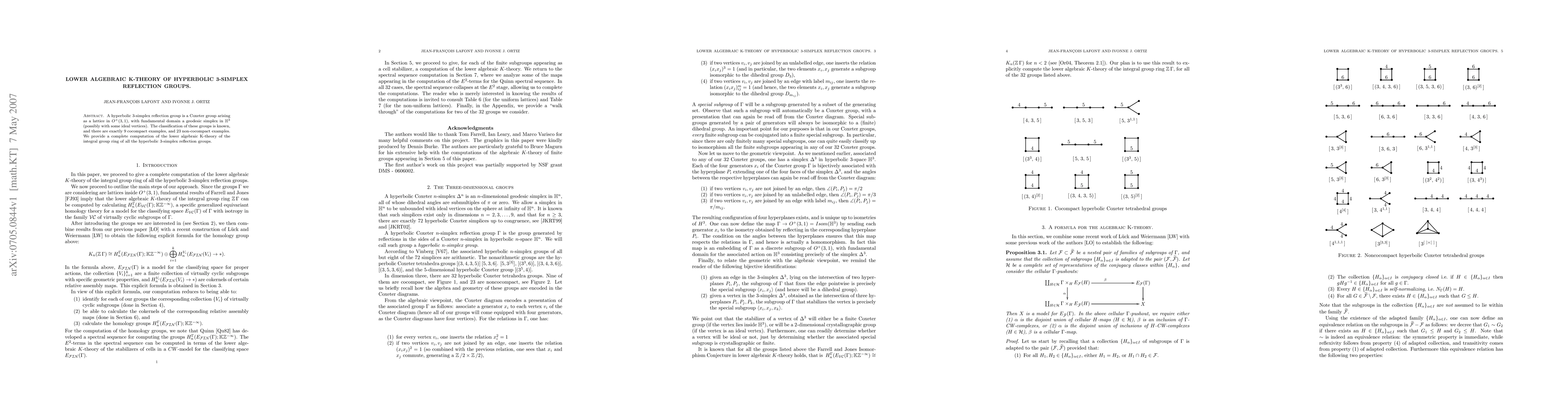 This paper computes the lower algebraic K-theory of the integral group ring for all hyperbolic 3-simplex reflection groups, classifying both cocompact and non-cocompact examples. The detailed results provide a comprehensive understanding of the algebraic structures of these groups.