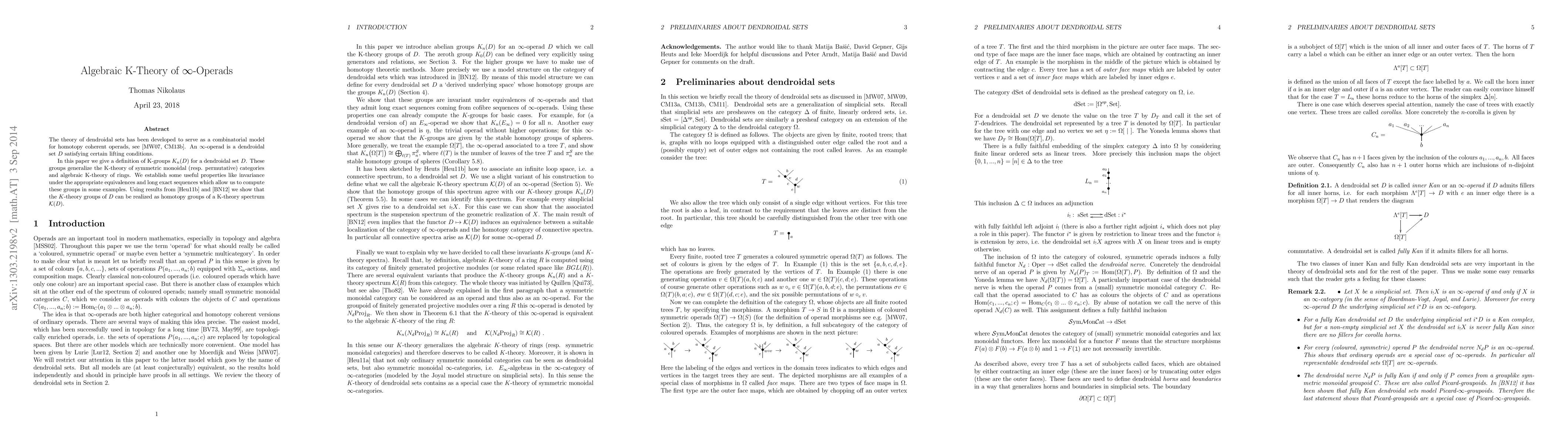 The paper develops a theory of algebraic K-theory for infinity-operads using dendroidal sets as a combinatorial model, generalizing K-theory of symmetric monoidal categories and algebraic K-theory of rings.