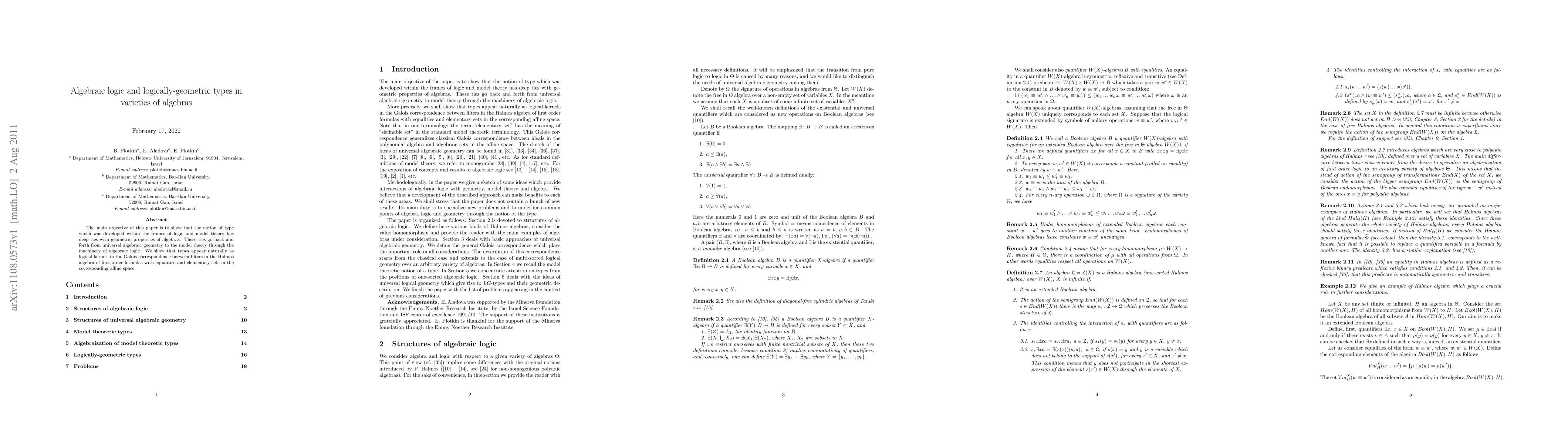 The main objective of this paper is to show that the notion of type which was developed within the frames of logic and model theory has deep ties with geometric properties of algebras. These ties go back and forth from universal algebraic geometry to the model theory through the machinery of algebraic logic. We show that types appear naturally as logical kernels in the Galois correspondence between filters in the Halmos algebra of first order formulas with equalities and elementary sets in the corresponding affine space.