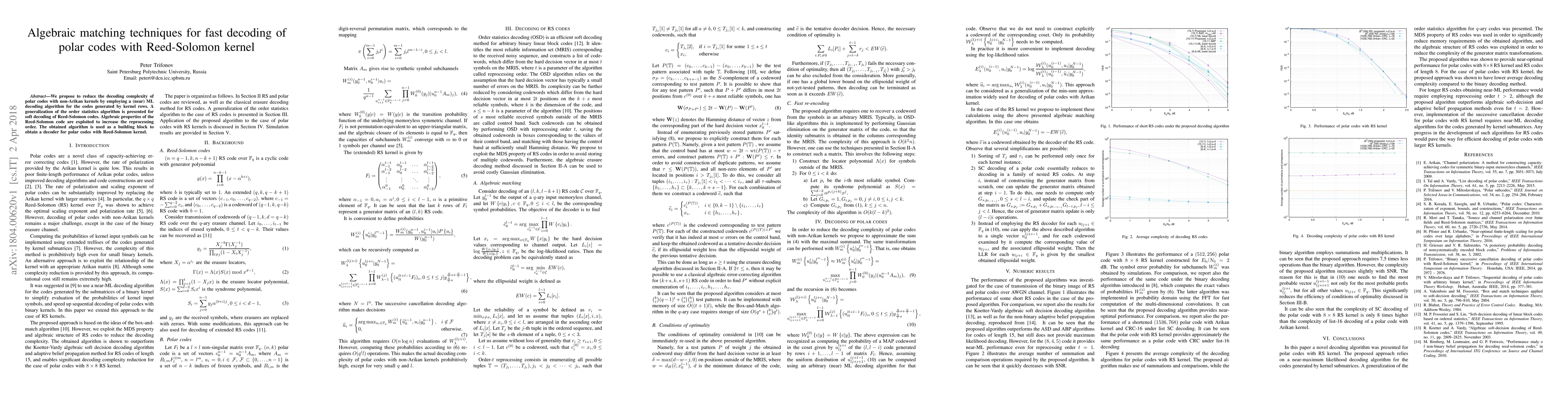 We propose to reduce the decoding complexity of polar codes with non-Arikan kernels by employing a (near) ML decoding algorithm for the codes generated by kernel rows. A generalization of the order statistics algorithm is presented for soft decoding of Reed-Solomon codes. Algebraic properties of the Reed-Solomon code are exploited to increase the reprocessing order. The obtained algorithm is used as a building block to obtain a decoder for polar codes with Reed-Solomon kernel.