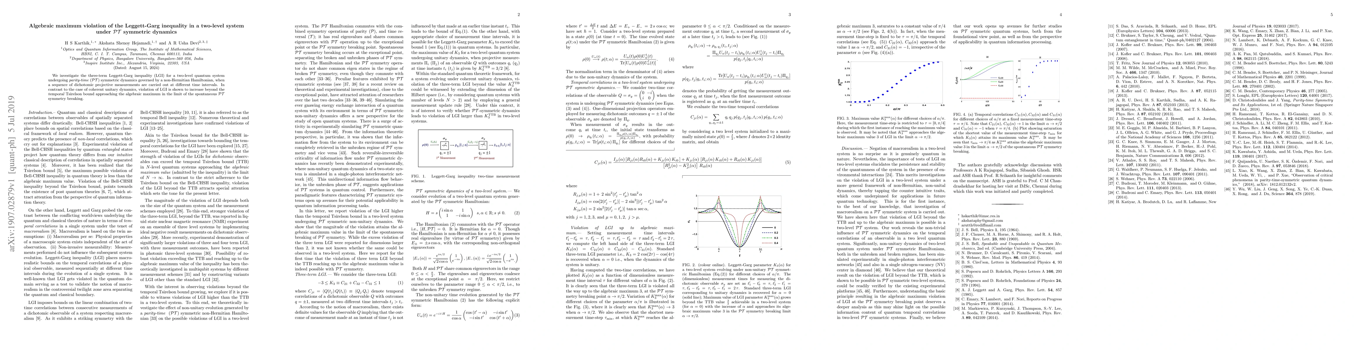 This paper explores the violation of the Leggett-Garg inequality in a two-level quantum system under PT symmetric dynamics, demonstrating that the inequality can exceed the temporal Tsirelson bound and reach an algebraic maximum limit due to spontaneous PT symmetry breaking.