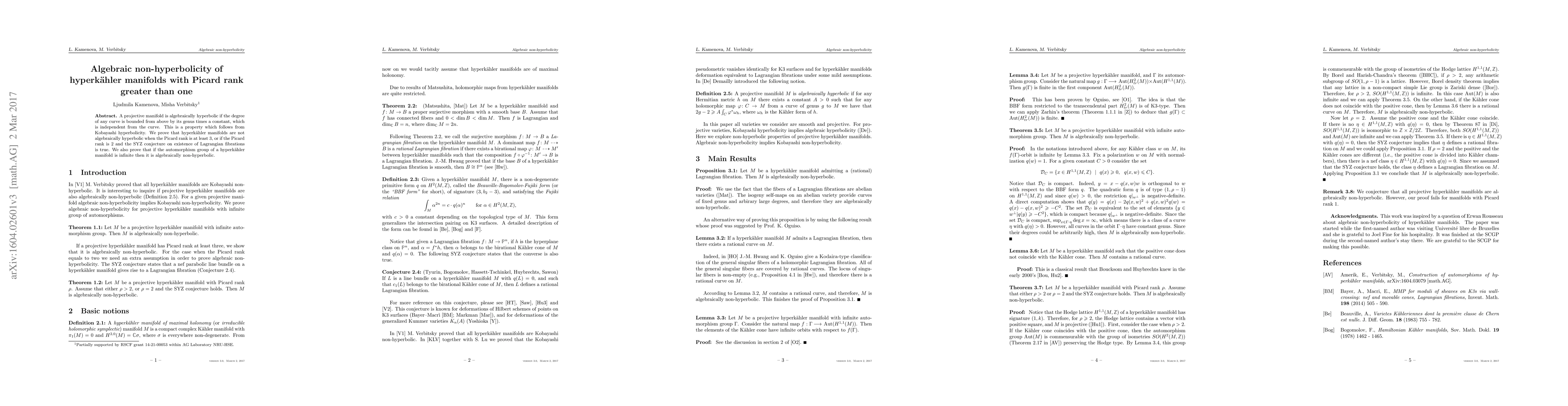 The paper explores non-hyperbolic properties of projective hyperkähler manifolds, leveraging results on Lagrangian fibrations and automorphism groups.