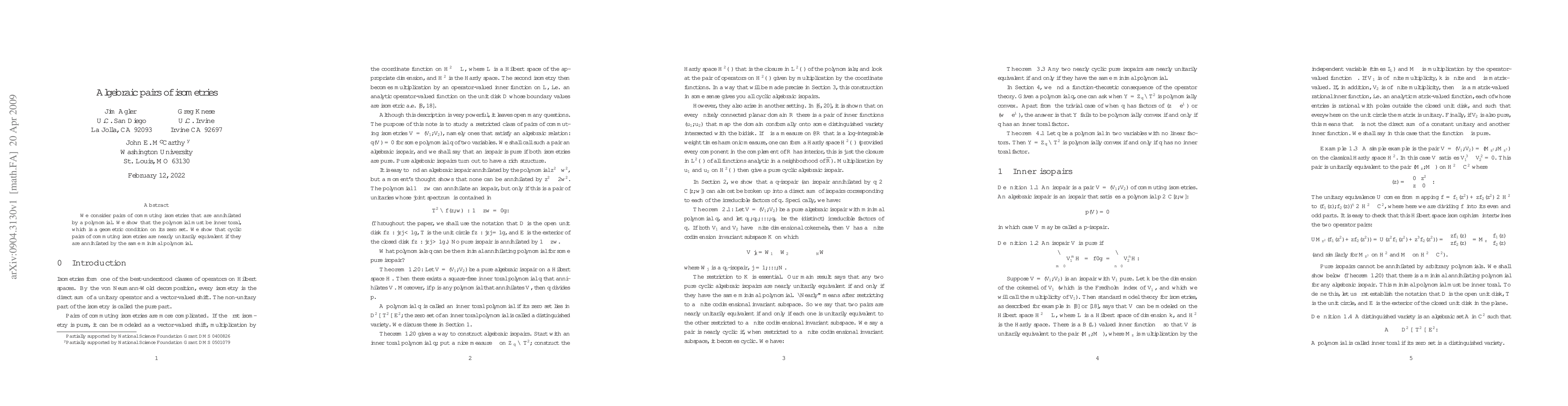 The paper presents a detailed analysis of algebraic pairs of isometries, linking their annihilating polynomials to geometric conditions and establishing criteria for nearly unitary equivalence.