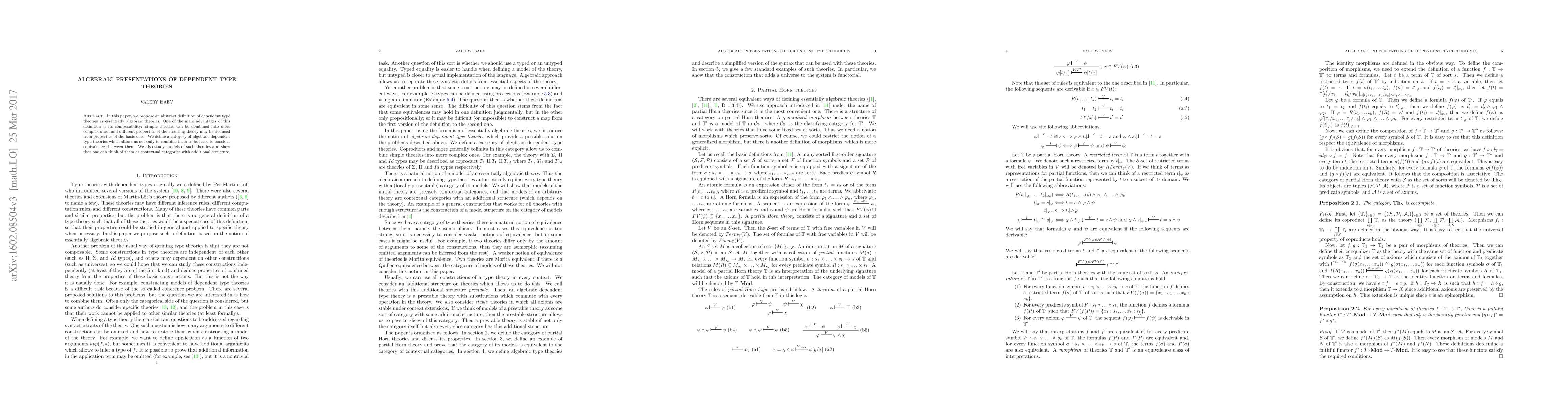 In this paper, we propose an abstract definition of dependent type theories as essentially algebraic theories. One of the main advantages of this definition is its composability: simple theories can be combined into more complex ones, and different properties of the resulting theory may be deduced from properties of the basic ones. We define a category of algebraic dependent type theories which allows us not only to combine theories but also to consider equivalences between them. We also study models of such theories and show that one can think of them as contextual categories with additional structure.