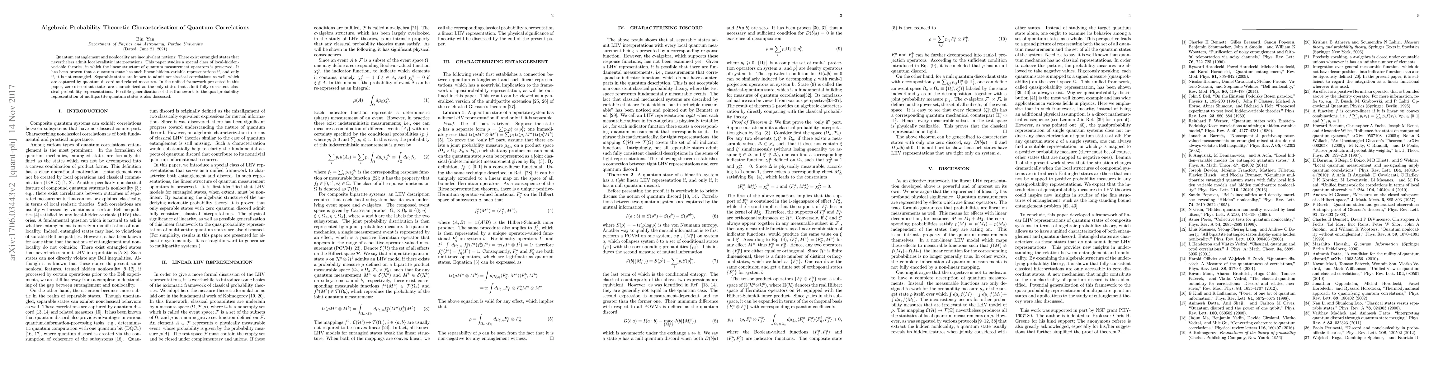 Quantum entanglement and nonlocality are inequivalent notions: There exist entangled states that nevertheless admit local-realistic interpretations. This paper studies a special class of local-hidden-variable theories, in which the linear structure of quantum measurement operators is preserved. It has been proven that a quantum state has such linear hidden-variable representations if, and only if, it is not entangled. Separable states are known to admit nonclassical correlations as well, which are captured by quantum discord and related measures. In the unified framework presented in this paper, zero-discordant states are characterized as the only states that admit fully consistent classical probability representations. Possible generalization of this framework to the quasiprobability representation of multipartite quantum states is also discussed.