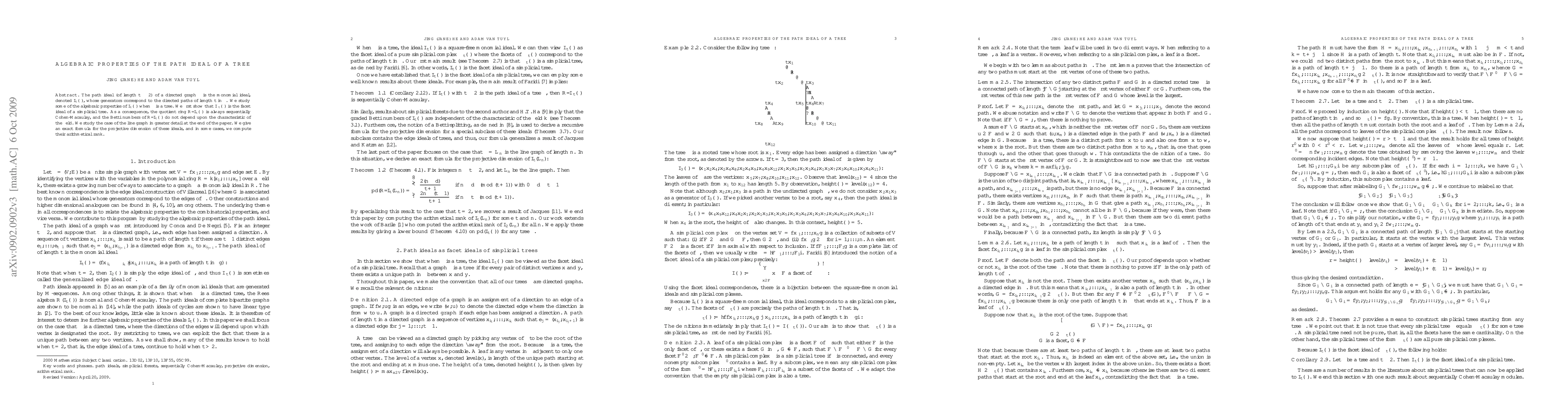 The path ideal (of length t >=2) of a graph G is the monomial ideal, denoted I_t(G), whose generators correspond to the directed paths of length t in G. We study some of the algebraic properties of I_t(G) when G is a tree. We first show that I_t(G) is the facet ideal of a simplicial tree. As a consequence, the quotient ring R/I_t(G) is always sequentially Cohen-Macaulay, and the Betti numbers of R/I_t(G) do not depend upon the characteristic of the field. We study the case of the line graph in greater detail at the end of the paper.