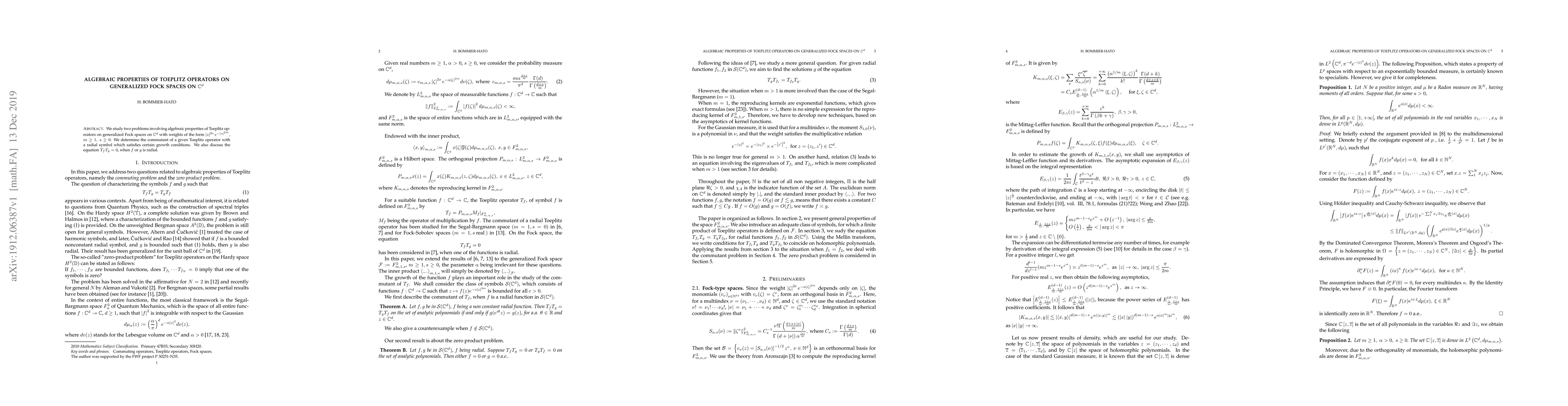 We study two problems involving algebraic properties of Toeplitz operators on generalized Fock spaces on $\mathbb{C}^d$ with weights of the form $\left|z\right|^{2s} e^{-\left|z\right|^{2m}}$, $m\geq 1,\ s\geq 0$. We determine the commutant of a given Toeplitz operator with a radial symbol which satisfies certain growth conditions. We also discuss the equation $T_fT_g=0$, when $f$ or $g$ is radial.