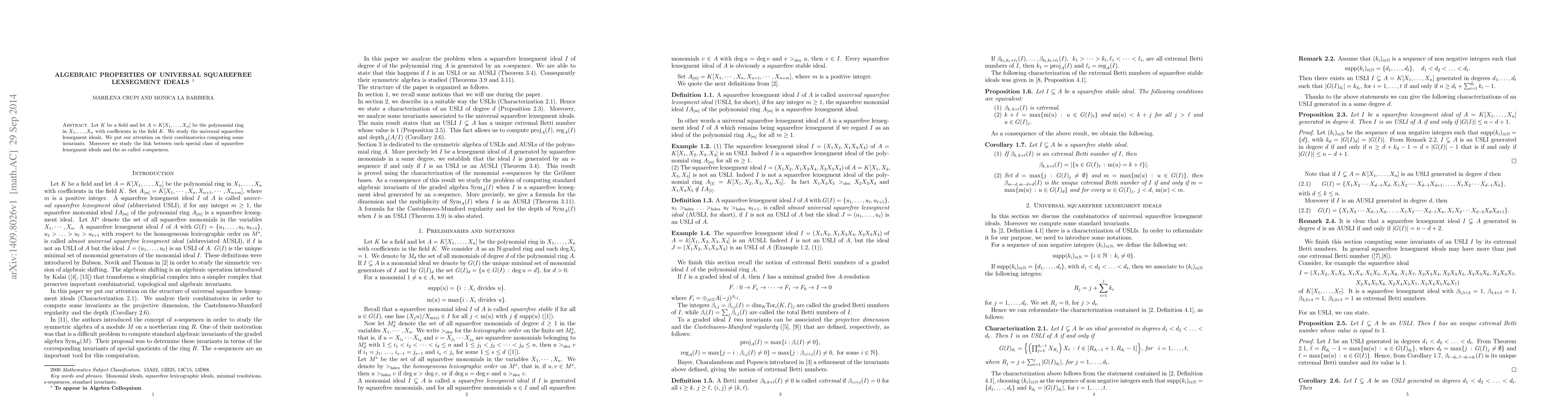 This paper explores the algebraic properties and combinatorial invariants of universal squarefree lexsegment ideals in polynomial rings over a field K, and investigates their connection to s-sequences.
