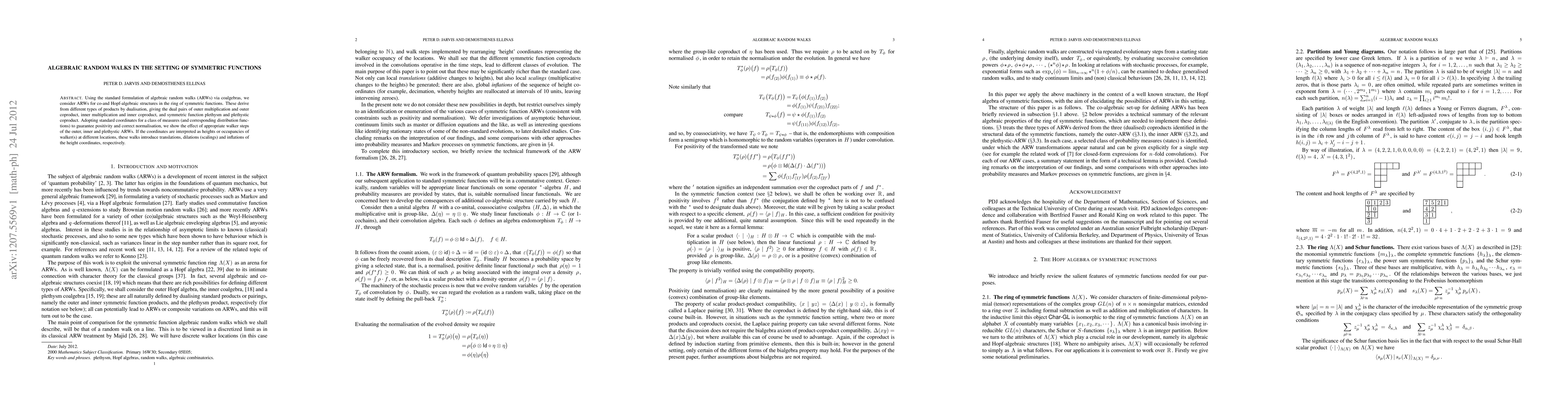 This paper explores algebraic random walks within the framework of symmetric functions, employing coalgebras and Hopf-algebraic structures. It examines different types of products that lead to distinct dual pairs and analyzes their effects on walker steps, introducing translations, scalings, and inflations interpreted as height transformations.