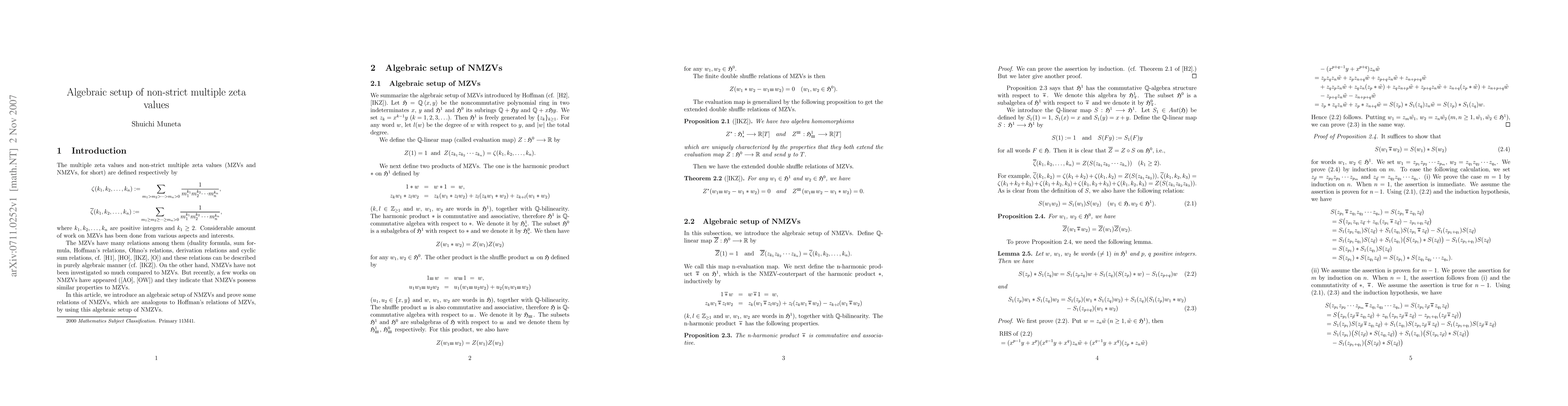 This paper introduces an algebraic framework for non-strict multiple zeta values (NMZVs) and establishes relations among them that mirror Hoffman's relations for multiple zeta values using this new setup.