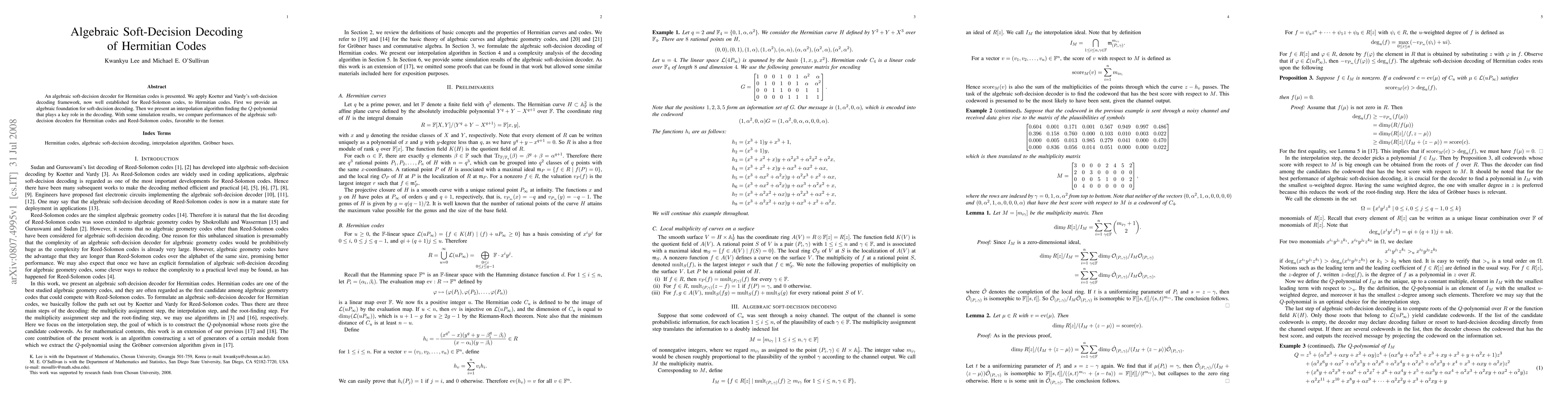 The paper presents an algebraic soft-decision decoder for Hermitian codes, applying Koetter and Vardy's established framework from Reed-Solomon codes. Simulation results show that the decoder for Hermitian codes performs favorably compared to that of Reed-Solomon codes.