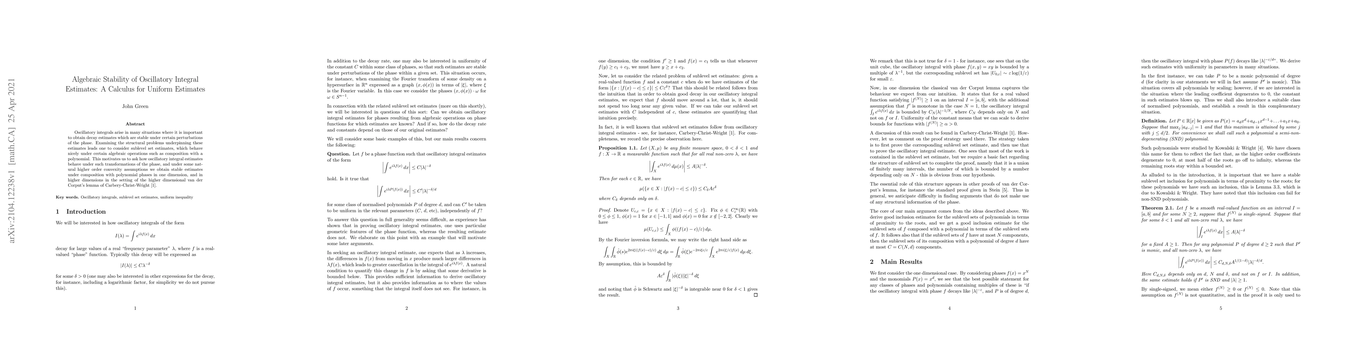Oscillatory integrals arise in many situations where it is important to obtain decay estimates which are stable under certain perturbations of the phase. Examining the structural problems underpinning these estimates leads one to consider sublevel set estimates, which behave nicely under certain algebraic operations such as composition with a polynomial. This motivates us to ask how oscillatory integral estimates behave under such transformations of the phase, and under some natural higher order convexity assumptions we obtain stable estimates under composition with polynomial phases in one dimension, and in higher dimensions in the setting of the higher dimensional van der Corput's lemma of Carbery-Christ-Wright.
