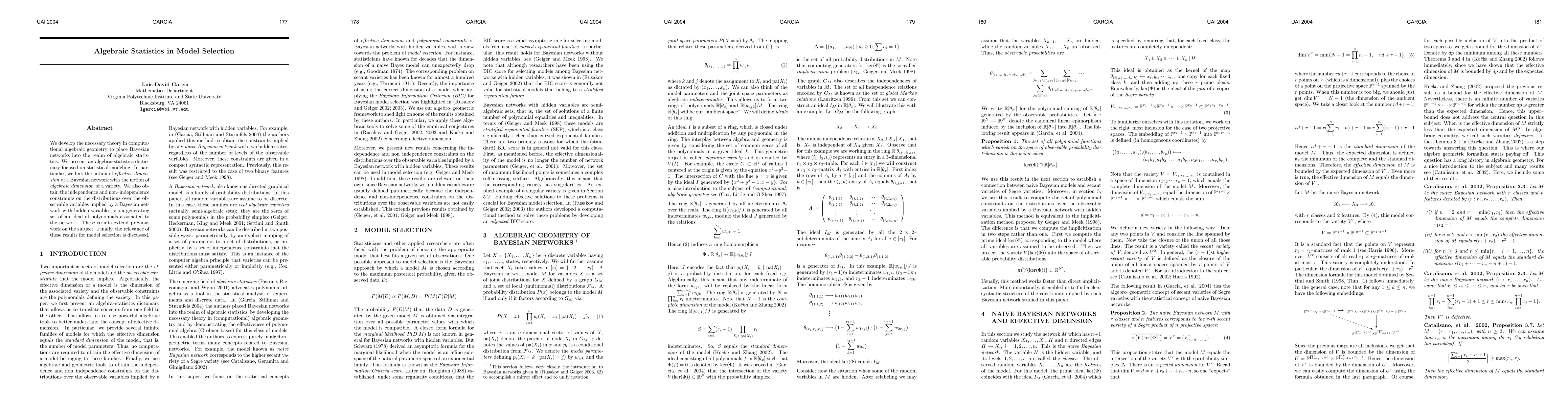 The research develops the theory in computational algebraic geometry to place Bayesian networks within algebraic statistics, linking the effective dimension of a Bayesian network with the algebraic dimension of a variety.