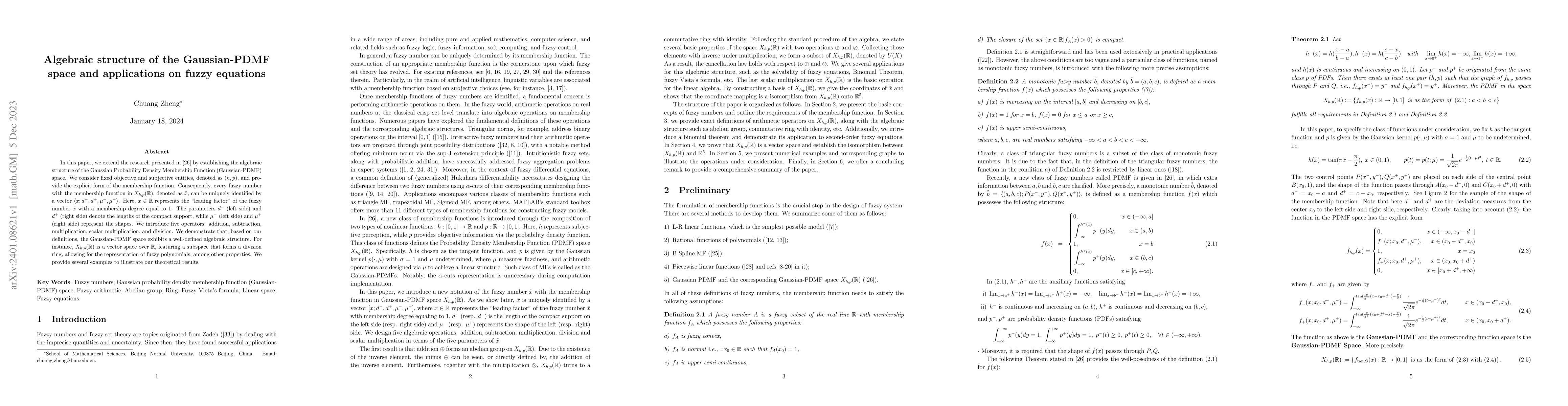 This paper establishes the algebraic structure of the Gaussian Probability Density Membership Function (Gaussian-PDMF) space, introducing five operators and demonstrating that $X_{h,p}(\mathbb{R})$ forms a vector space over $\mathbb{R}$ with a division ring subspace, allowing for the representation of fuzzy polynomials.