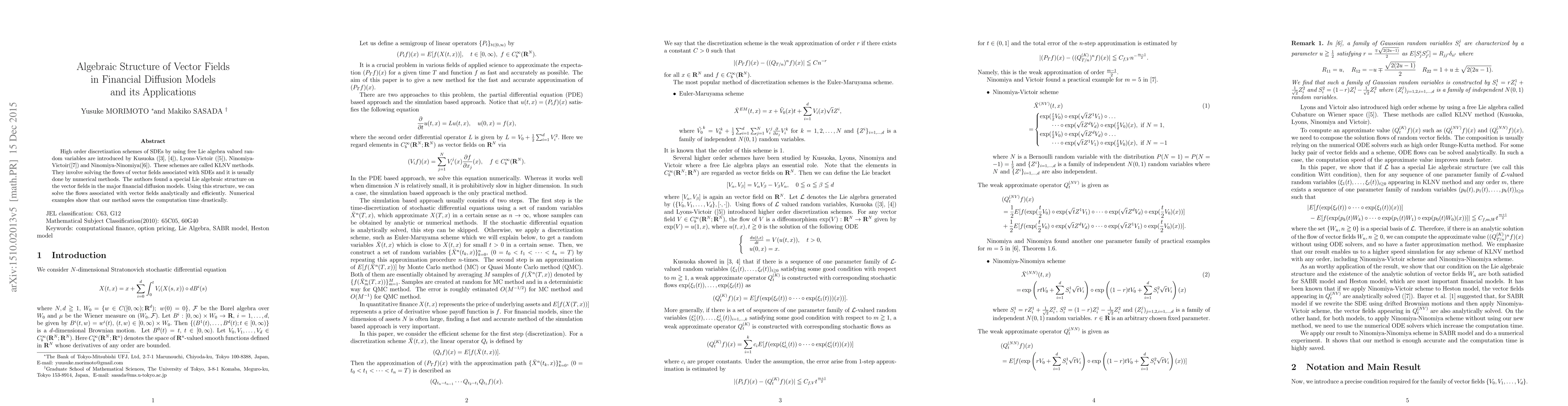 Researchers discovered a special Lie algebraic structure in vector fields of financial diffusion models that allows for efficient analytical solution, reducing computation time significantly.