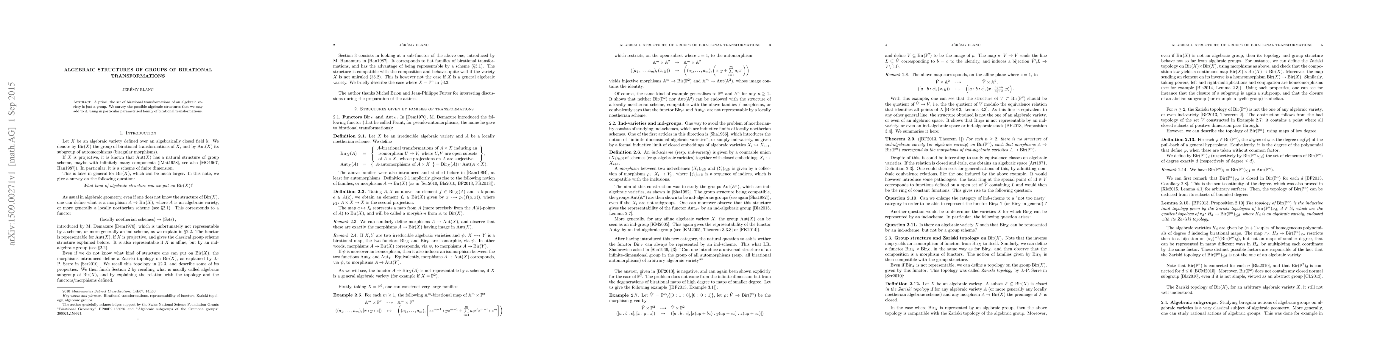 A priori, the set of birational transformations of an algebraic variety is just a group. We survey the possible algebraic structures that we may add to it, using in particular parametrised family of birational transformations.