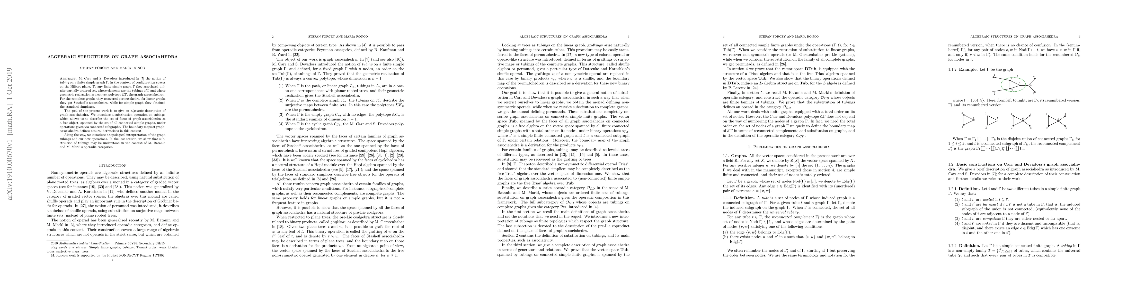 This paper develops an algebraic framework for graph associahedra, introducing a substitution operation on tubings to describe their faces as a free object. It connects these algebraic structures to topological interpretations and operadic categories.