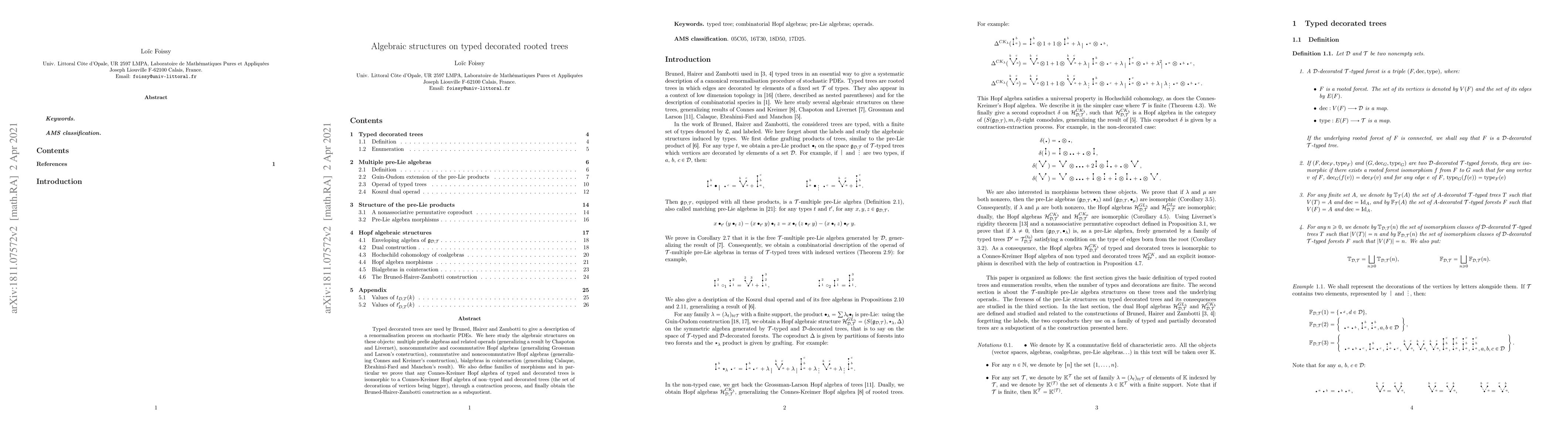 Researchers studied algebraic structures on typed decorated rooted trees, generalizing previous results in Hopf algebras and operads, with implications for the study of stochastic PDEs and renormalization processes.