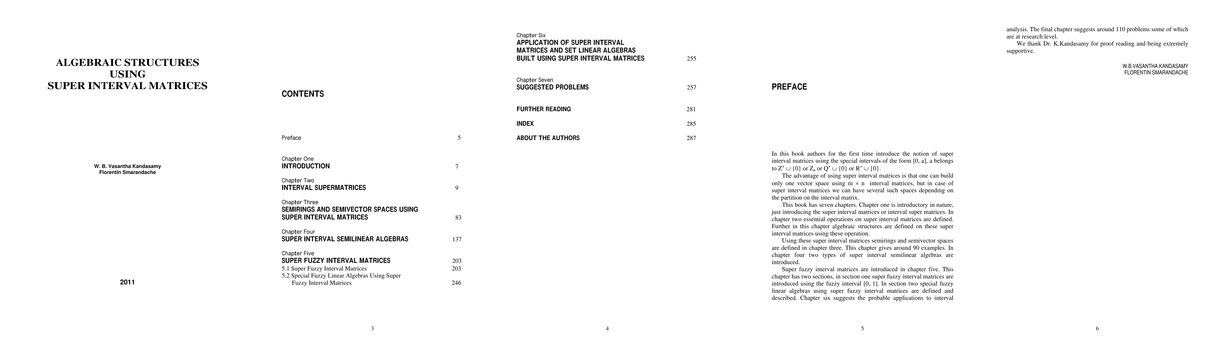 In this book super interval matrices using the special type of intervals of the form [0, a] are introduced. Several algebraic structures like semigroups, groups, semirings, rings, semivector spaces and vector spaces are introduced. Special fuzzy linear algebras are introduced using the concept of super fuzzy interval matrices.