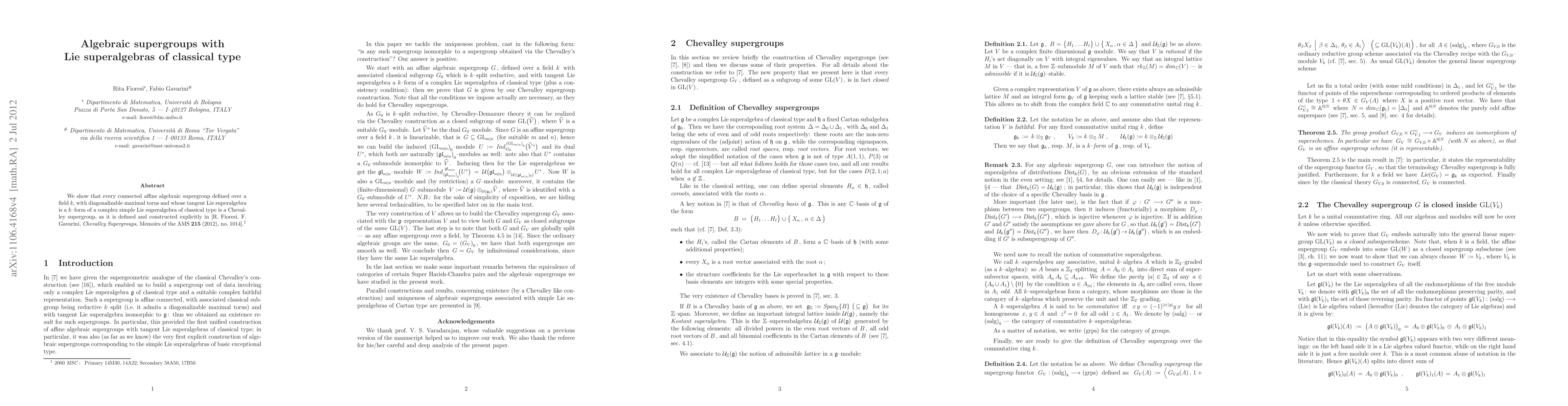 Summary: The paper demonstrates that any connected affine algebraic supergroup over a field k, featuring a diagonalizable maximal torus and a tangent Lie superalgebra modeled on a classical complex simple Lie superalgebra, is inherently a Chevalley supergroup, with an explicit construction based on prior work.