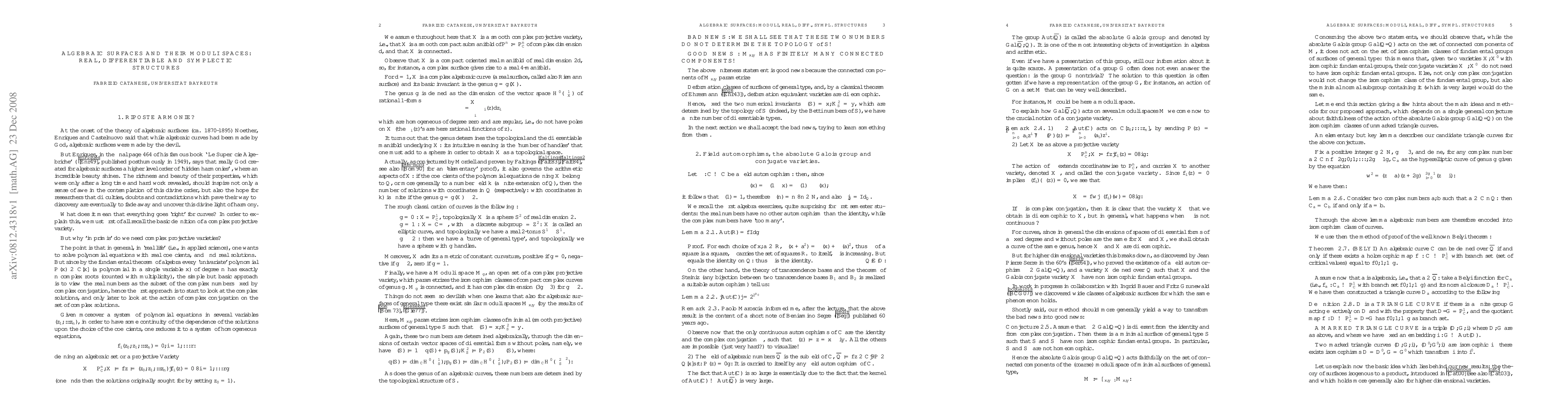 This paper surveys recent research on moduli spaces of algebraic surfaces, focusing on real, differentiable, and symplectic structures. The study aims to provide a comprehensive overview of the current state of knowledge in this area of mathematics.