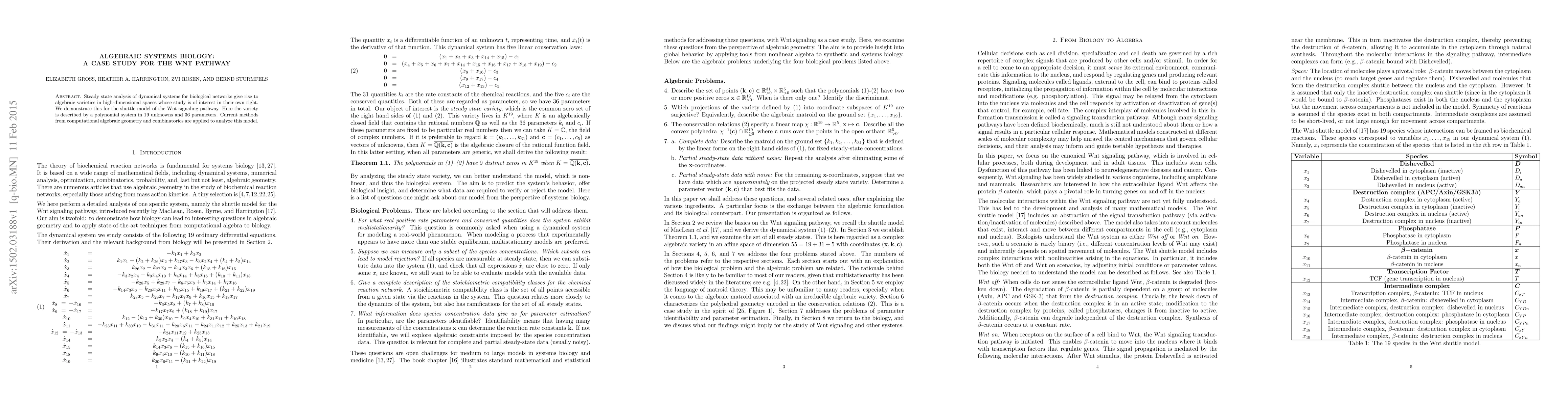 This research is significant as it bridges systems biology with algebraic geometry, providing a mathematical framework to analyze complex biological pathways like the Wnt signaling pathway, which could lead to better understanding of cellular processes and disease mechanisms.