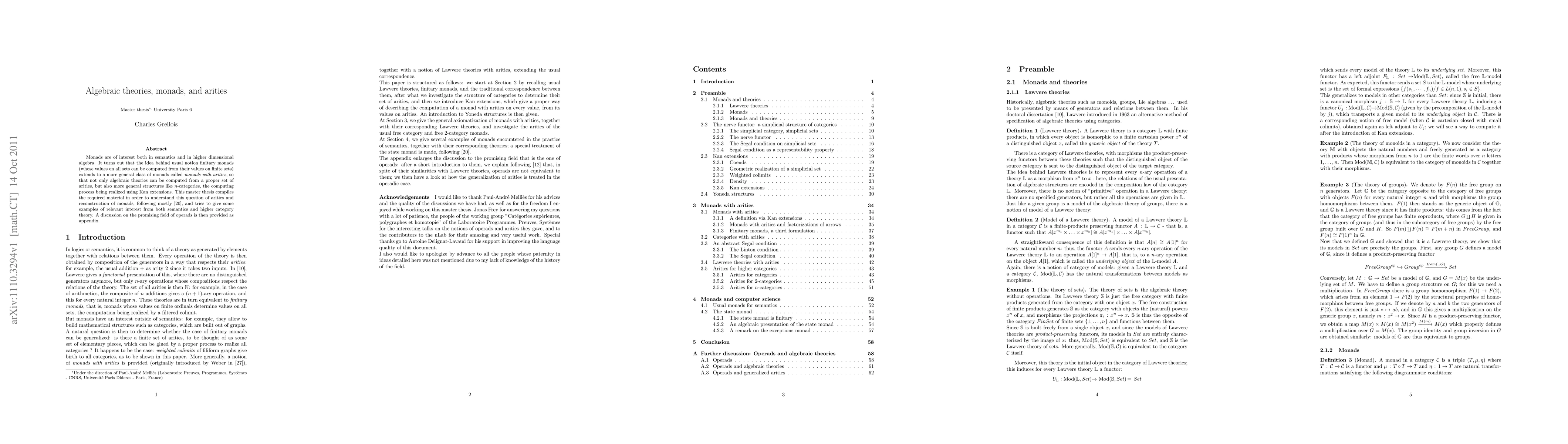This paper explores how the concept of finitary monads extends to monads with arities, enabling the computation of algebraic theories and n-categories from a set of arities using Kan extensions. An appendix discusses the potential of operads in this context.