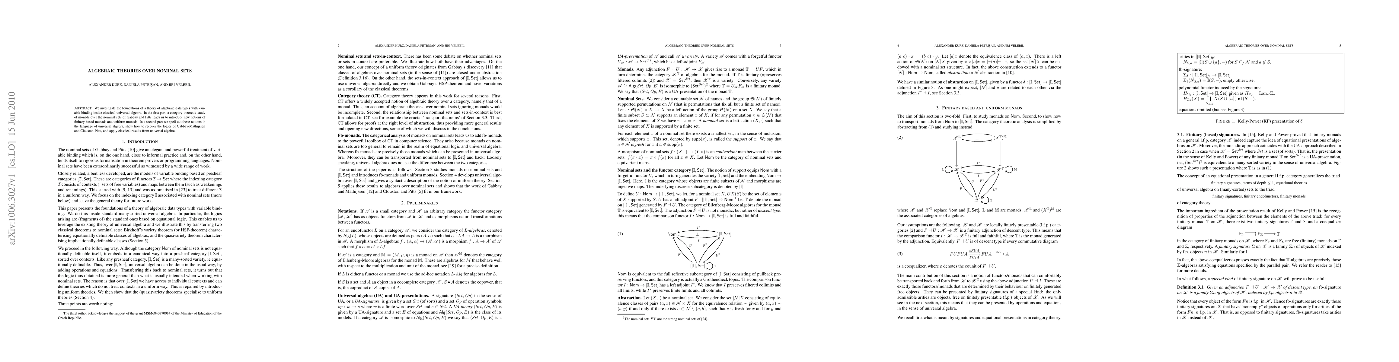 We investigate the foundations of a theory of algebraic data types with variable binding inside classical universal algebra. In the first part, a category-theoretic study of monads over the nominal sets of Gabbay and Pitts leads us to introduce new notions of finitary based monads and uniform monads. In a second part we spell out these notions in the language of universal algebra, show how to recover the logics of Gabbay-Mathijssen and Clouston-Pitts, and apply classical results from universal algebra.
