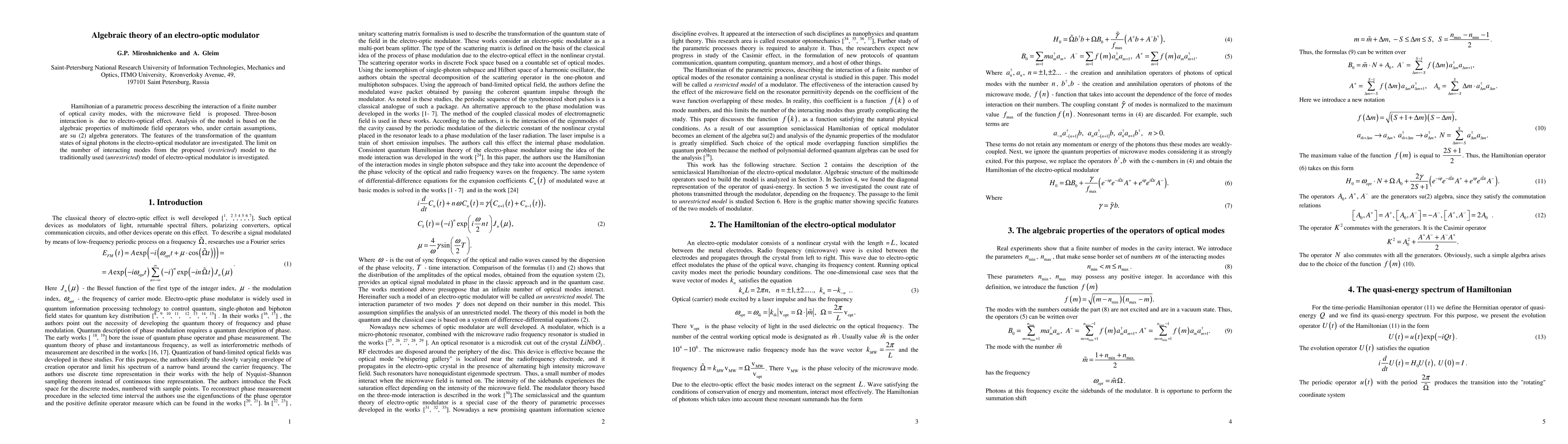 Researchers propose a new algebraic theory for electro-optic modulators, exploring the effects of three-boson interactions on quantum states of signal photons. They also investigate the limitations of their model compared to traditional approaches.