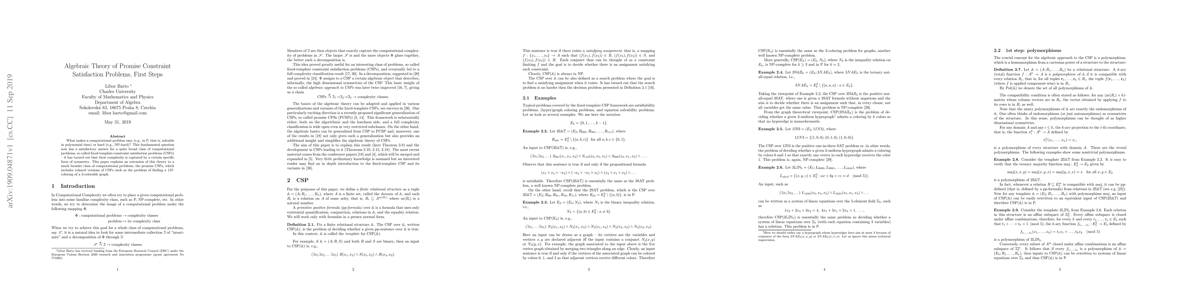 What makes a computational problem easy (e.g., in P, that is, solvable in polynomial time) or hard (e.g., NP-hard)? This fundamental question now has a satisfactory answer for a quite broad class of computational problems, so called fixed-template constraint satisfaction problems (CSPs) -- it has turned out that their complexity is captured by a certain specific form of symmetry. This paper explains an extension of this theory to a much broader class of computational problems, the promise CSPs, which includes relaxed versions of CSPs such as the problem of finding a 137-coloring of a 3-colorable graph.