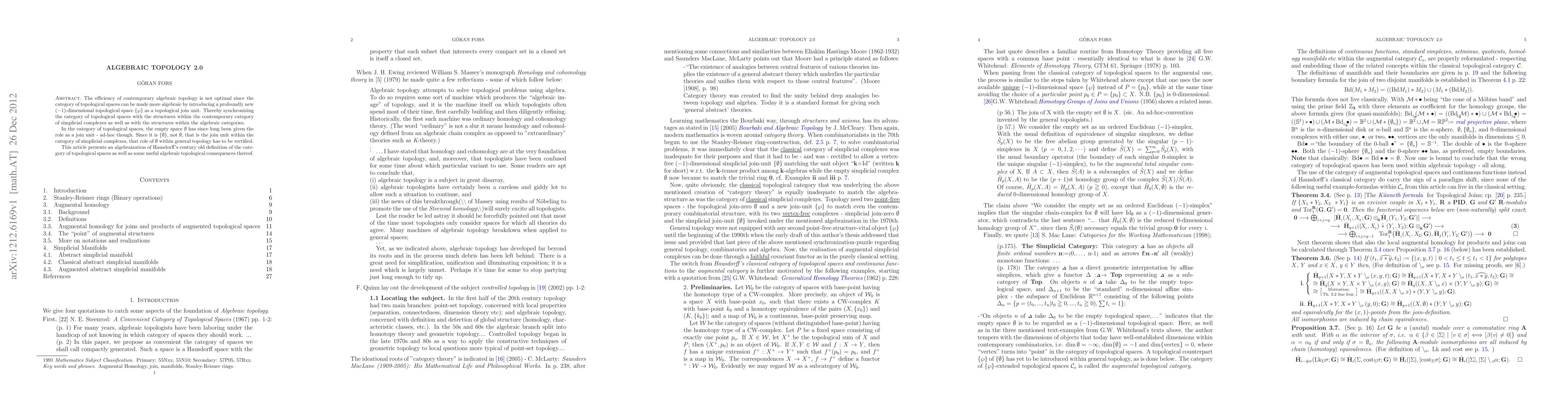The efficiency of contemporary algebraic topology is not optimal since the category of topological spaces can be made more algebraic by introducing a profoundly new (-1)-dimensional topological space as a topological join unit. Thereby synchronizing the category of topological spaces with the structures within the contemporary category of simplicial complexes as well as with the structures within the algebraic categories. In the category of topological spaces, the empty space {\O} has since long been given the role as a join unit - ad-hoc though. Since it is {{\O}}, not {\O}, that is the join unit within the category of simplicial complexes, the role of {\O} within general topology has to be rectified. This article presents an algebraization of Hausdorff's century old definition of the category of topological spaces as well as some useful algebraic topological consequences thereof.