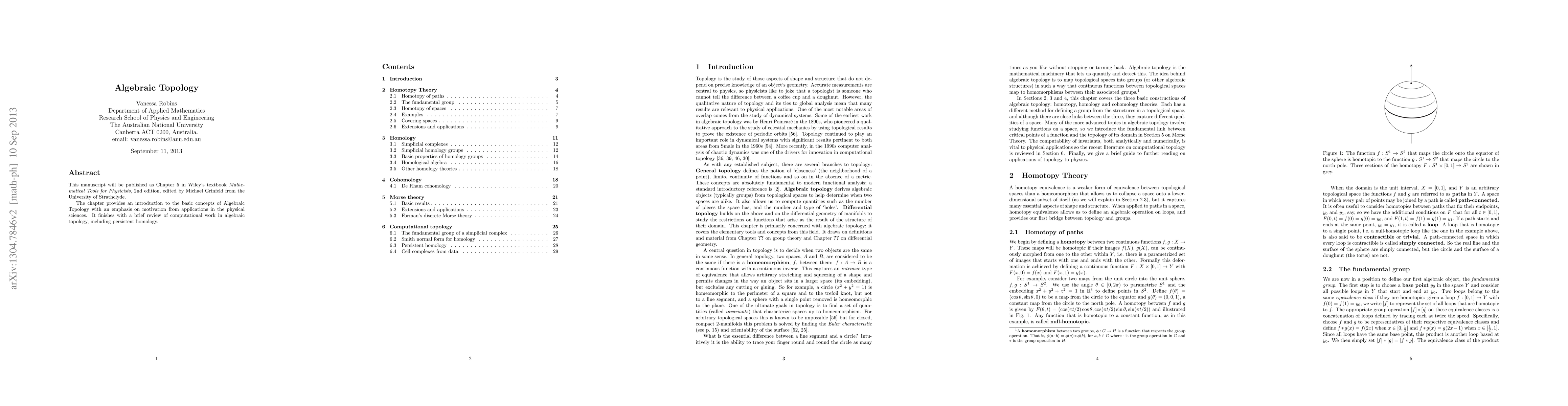 This chapter introduces fundamental concepts in Algebraic Topology, highlighting their applications in physical sciences and concluding with an overview of computational methods like persistent homology.
