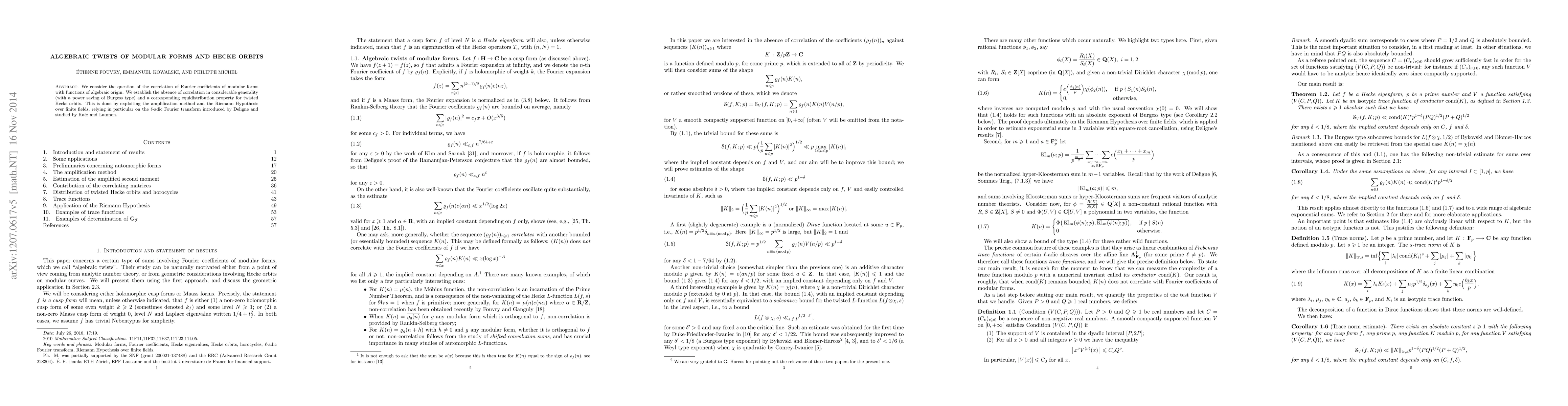 We consider the question of the correlation of Fourier coefficients of modular forms with functions of algebraic origin. We establish the absence of correlation in considerable generality (with a power saving of Burgess type) and a corresponding equidistribution property for twisted Hecke orbits. This is done by exploiting the amplification method and the Riemann Hypothesis over finite fields, relying in particular on the ell-adic Fourier transform introduced by Deligne and studied by Katz and Laumon.