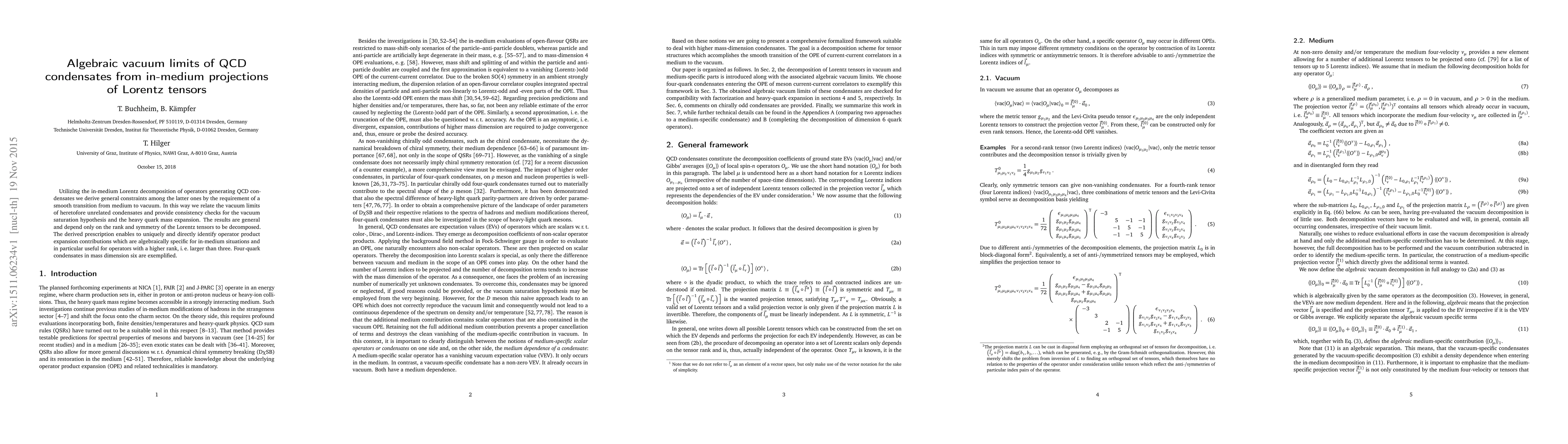Utilizing the in-medium Lorentz decomposition of operators generating QCD condensates we derive general constraints among the latter ones by the requirement of a smooth transition from medium to vacuum. In this way we relate the vacuum limits of heretofore unrelated condensates and provide consistency checks for the vacuum saturation hypothesis and the heavy quark mass expansion. The results are general and depend only on the rank and symmetry of the Lorentz tensors to be decomposed. The derived prescription enables to uniquely and directly identify operator product expansion contributions which are algebraically specific for in-medium situations and in particular useful for operators with a higher rank, i.e. larger than three. Four-quark condensates in mass dimension six are exemplified.