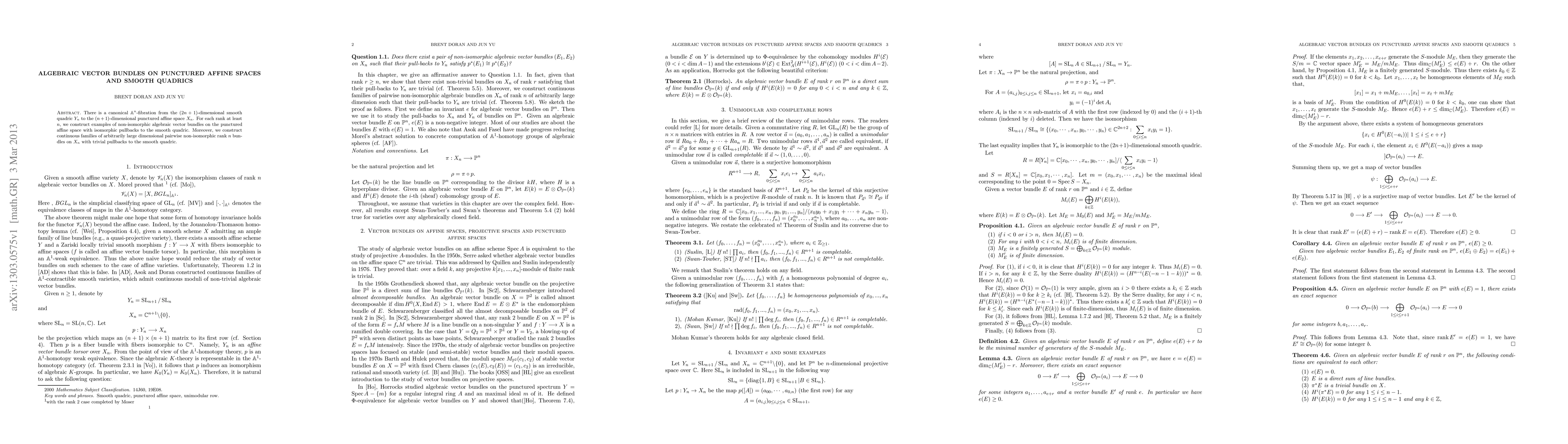 This paper constructs non-isomorphic algebraic vector bundles on punctured affine spaces whose pullbacks become isomorphic to those on smooth quadrics, illustrating a nuanced relationship between these geometric structures.