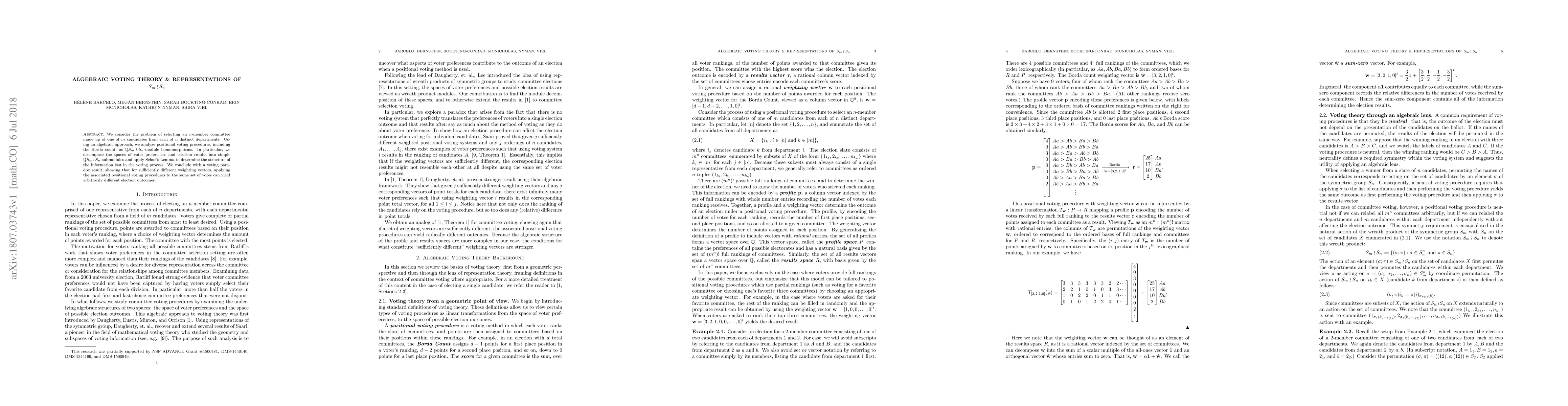 This paper uses algebraic voting theory to analyze positional voting procedures and their effects on election outcomes. It shows that different weighting vectors can lead to arbitrarily different results in the same set of votes, revealing a voting paradox.