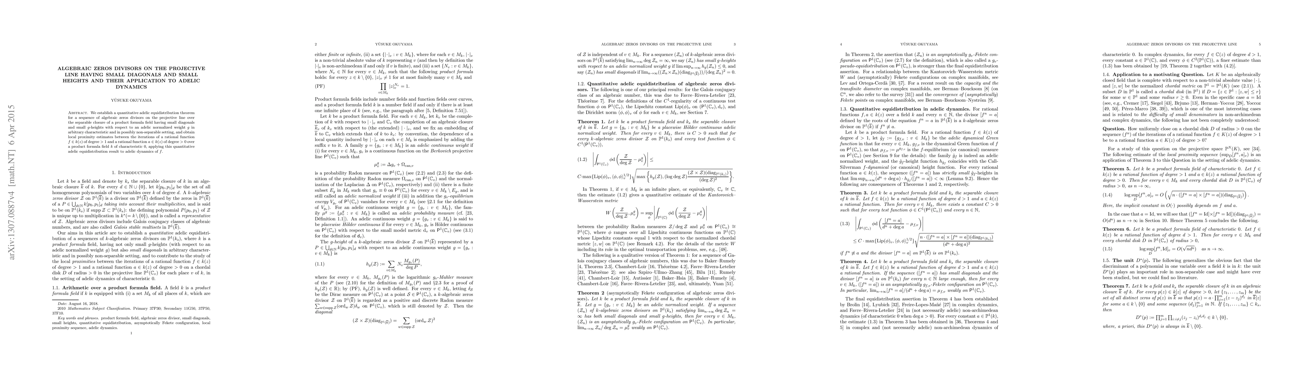 This paper establishes a quantitative adelic equidistribution theorem for algebraic zeros divisors on the projective line with small diagonals and heights, and uses this result to derive local proximity estimates for iterations of rational functions in adelic dynamics.