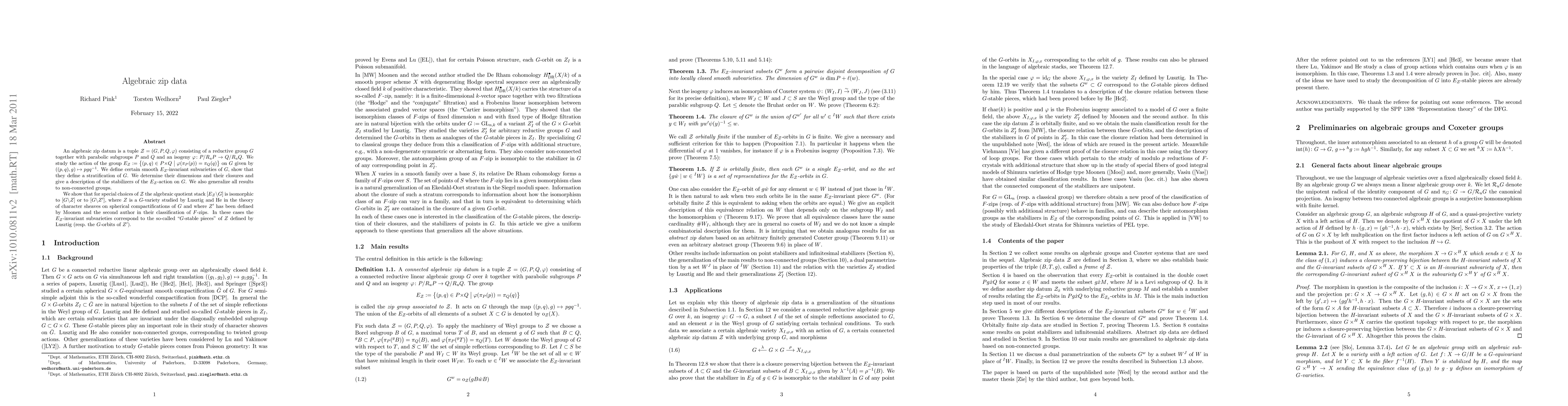 An algebraic zip datum is a tuple $\CZ := (G,P,Q,\phi)$ consisting of a reductive group $G$ together with parabolic subgroups $P$ and $Q$ and an isogeny $\phi\colon P/R_uP\to Q/R_uQ$. We study the action of the group $E := \{(p,q)\in P{\times}Q | \phi(\pi_{P}(p)) =\pi_Q(q)\}$ on $G$ given by $((p,q),g)\mapsto pgq^{-1}$. We define certain smooth $E$-invariant subvarieties of $G$, show that they define a stratification of $G$. We determine their dimensions and their closures and give a description of the stabilizers of the $E$-action on $G$. We also generalize all results to non-connected groups. We show that for special choices of $\CZ$ the algebraic quotient stack $[E \backslash G]$ is isomorphic to $[G \backslash Z]$ or to $[G \backslash Z']$, where $Z$ is a $G$-variety studied by Lusztig and He in the theory of character sheaves on spherical compactifications of $G$ and where $Z'$ has been defined by Moonen and the second author in their classification of $F$-zips. In these cases the $E$-invariant subvarieties correspond to the so-called "$G$-stable pieces" of $Z$ defined by Lusztig (resp. the $G$-orbits of $Z'$).
