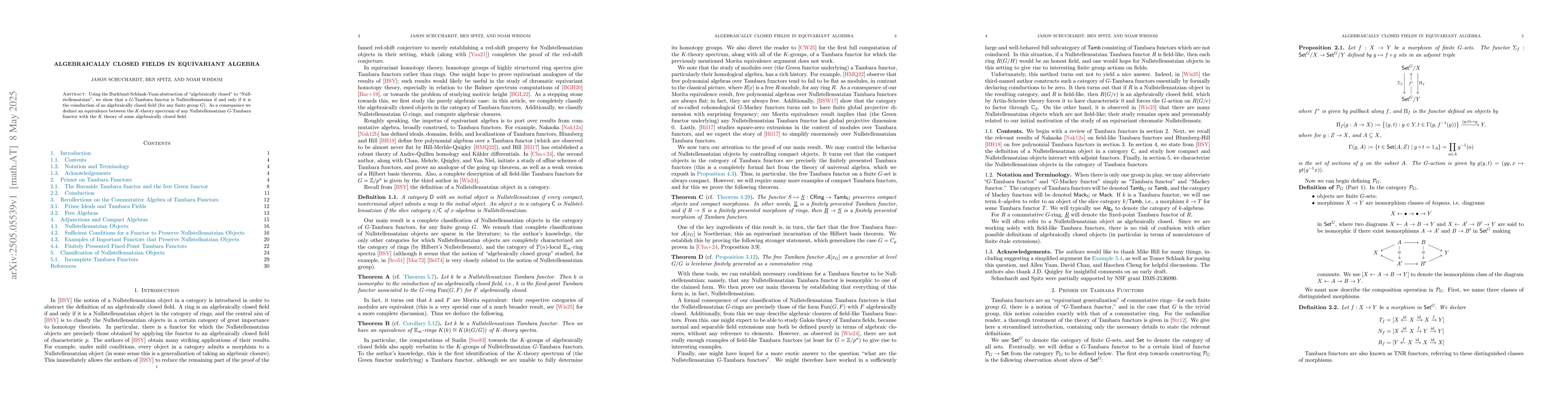 A recent research paper shows that a certain type of mathematical object called a G-Tambara functor is equivalent to a coinduction of an algebraically closed field, which has implications for understanding the K-theory spectrum of these functors.