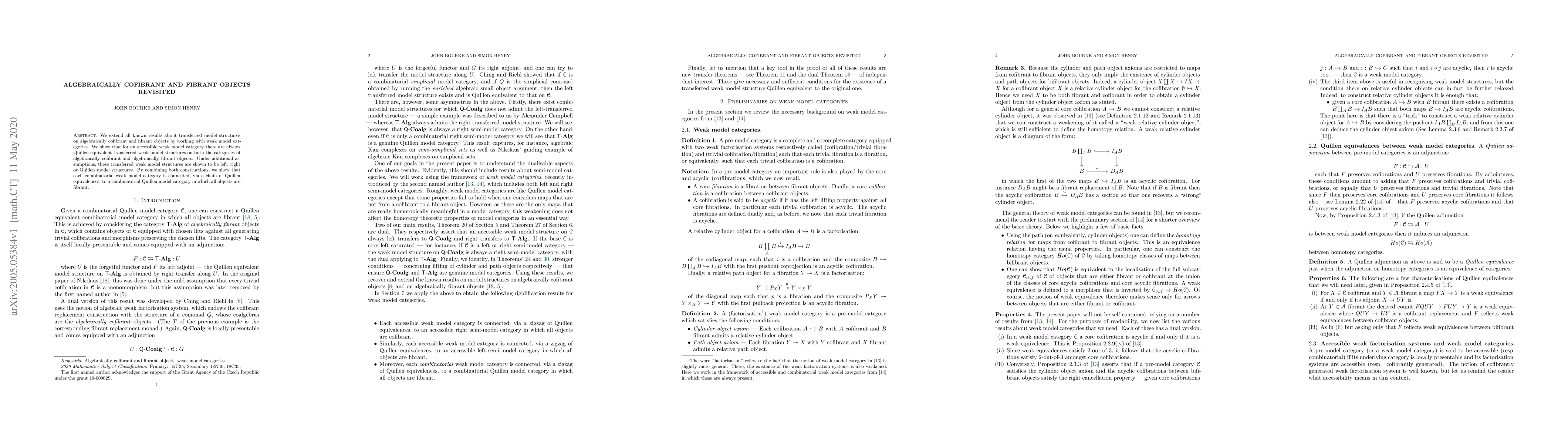 We extend all known results about transferred model structures on algebraically cofibrant and fibrant objects by working with weak model categories. We show that for an accessible weak model category there are always Quillen equivalent transferred weak model structures on both the categories of algebraically cofibrant and algebraically fibrant objects. Under additional assumptions, these transferred weak model structures are shown to be left, right or Quillen model structures. By combining both constructions, we show that each combinatorial weak model category is connected, via a chain of Quillen equivalences, to a combinatorial Quillen model category in which all objects are fibrant.