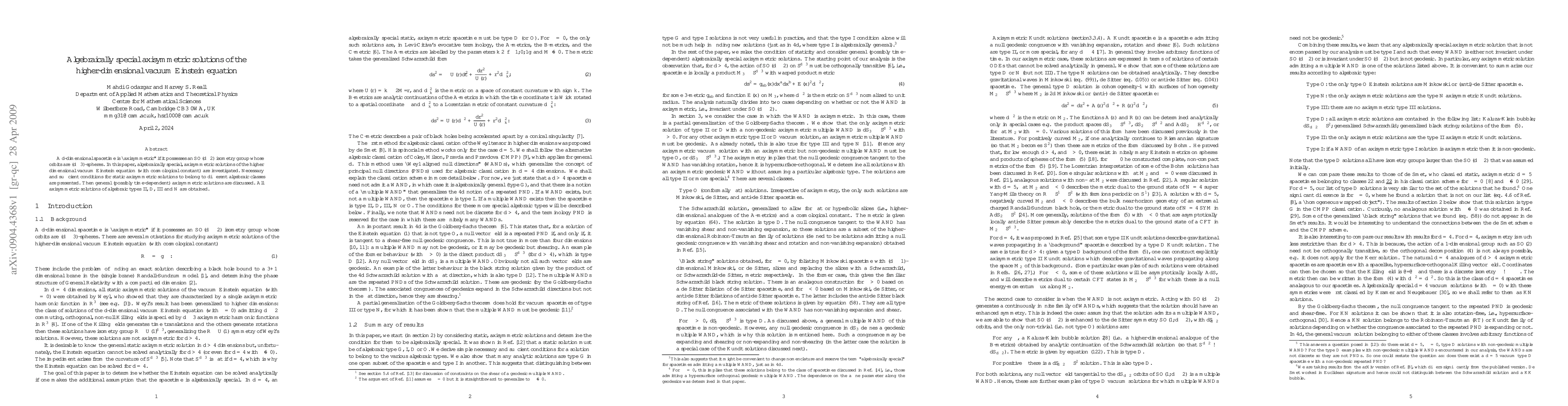 This paper investigates algebraically special axisymmetric solutions of the higher-dimensional vacuum Einstein equation, presenting necessary and sufficient conditions for static solutions belonging to different algebraic classes. It also derives general axisymmetric solutions of algebraic types II, D, III, and N.