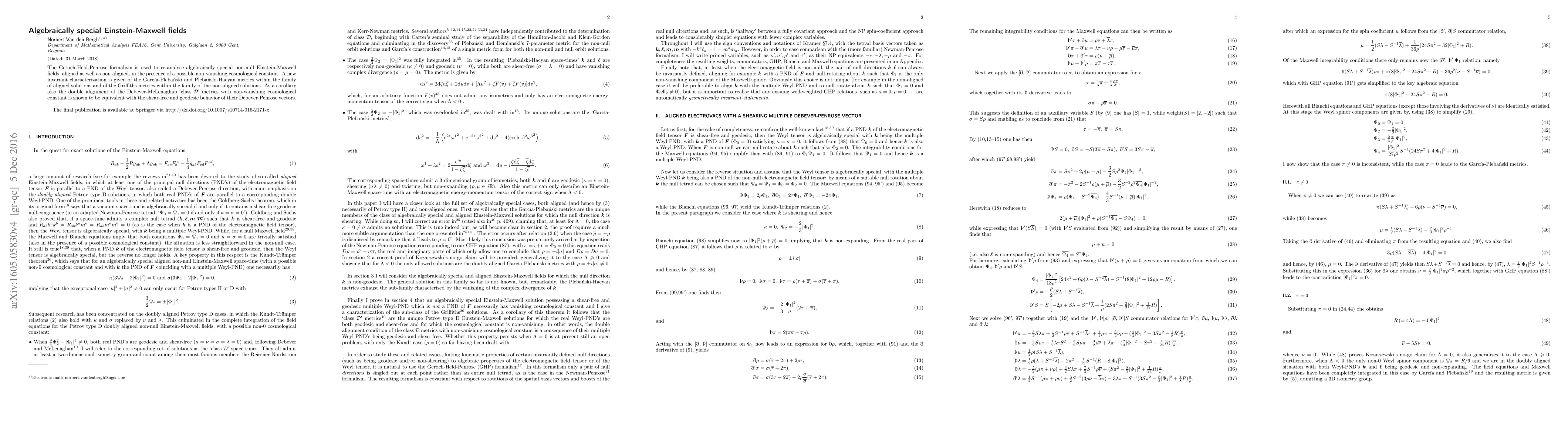 The Geroch-Held-Penrose formalism is used to re-analyse algebraically special non-null Einstein-Maxwell fields, aligned as well as non-aligned, in the presence of a possible non-vanishing cosmological constant. A new invariant characterisation is given of the Garcia-Plebanski and Plebanski-Hacyan metrics within the family of aligned solutions and of the Griffiths metrics within the family of the non-aligned solutions. As a corollary also the double alignment of the Debever-McLenaghan 'class D' metrics with non-vanishing cosmological constant is shown to be equivalent with the shear-free and geodesic behaviour of their Debever-Penrose vectors.