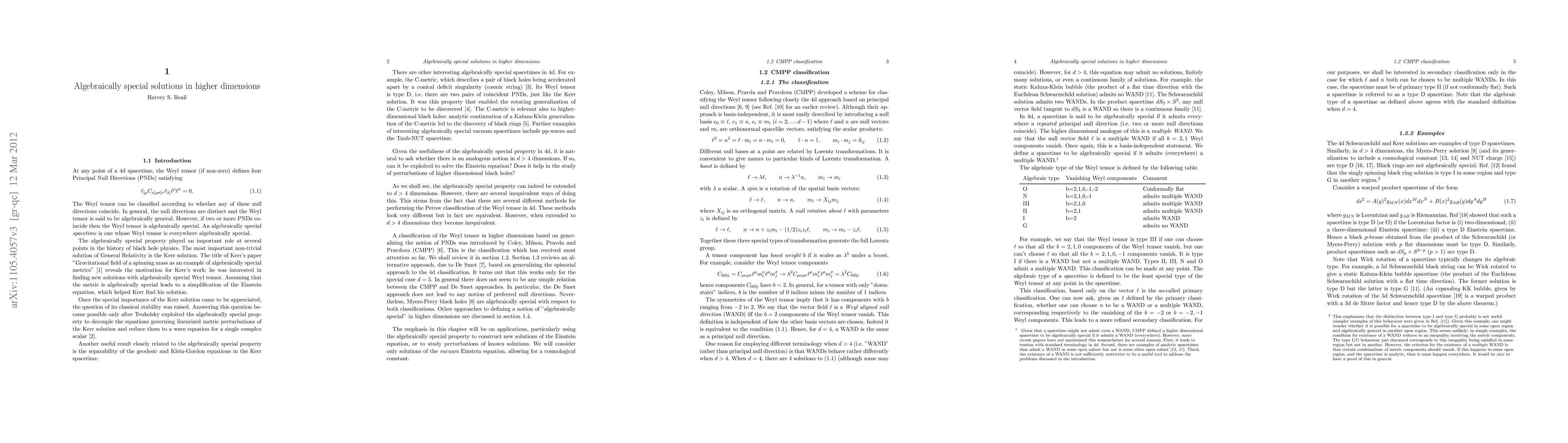 This paper provides an introductory review of the algebraic classification of the Weyl tensor, focusing on algebraically special solutions in higher-dimensional spacetimes. It explores the implications and characteristics of these special solutions in the context of general relativity.