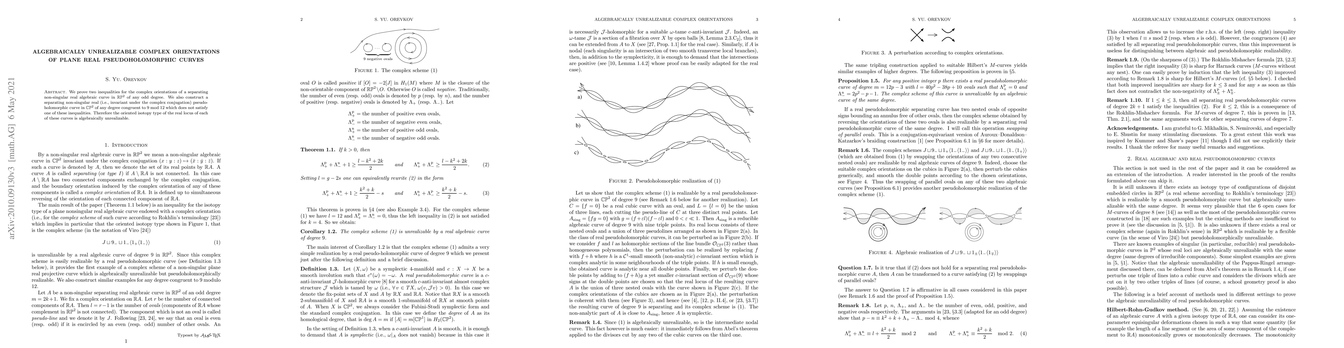 This paper proves two inequalities for complex orientations of odd-degree real algebraic curves in $RP^2$ and constructs a pseudoholomorphic curve of degree congruent to 9 mod 12 that violates one of these inequalities, demonstrating the algebraic unrealizability of its oriented isotopy type.
