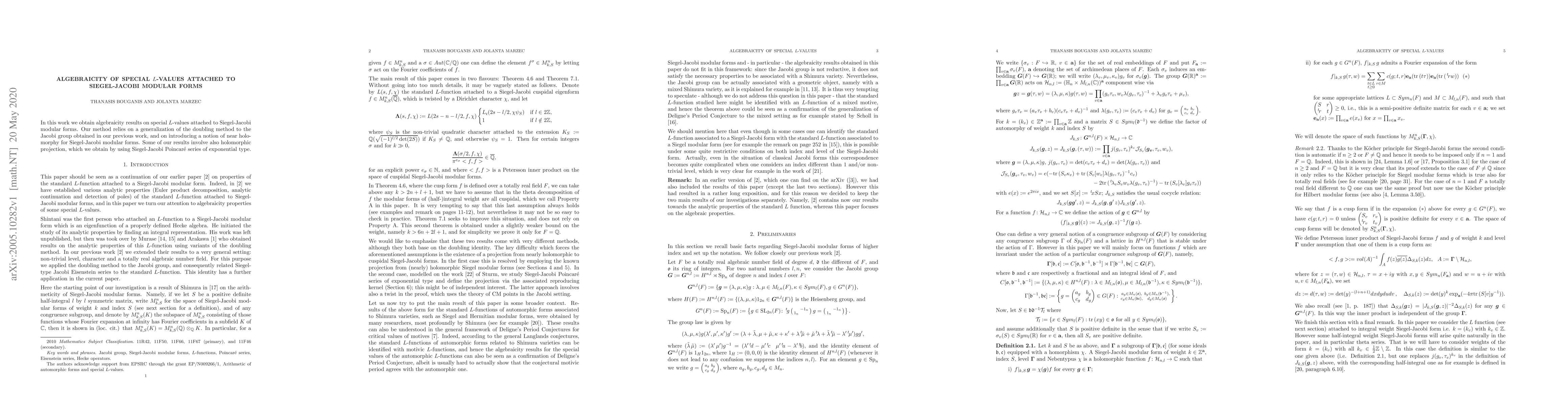This paper establishes algebraicity for specific $L$-values linked to Siegel-Jacobi modular forms, utilizing a generalized doubling method and a concept of near holomorphy, along with holomorphic projections derived from Siegel-Jacobi Poincaré series of exponential type.