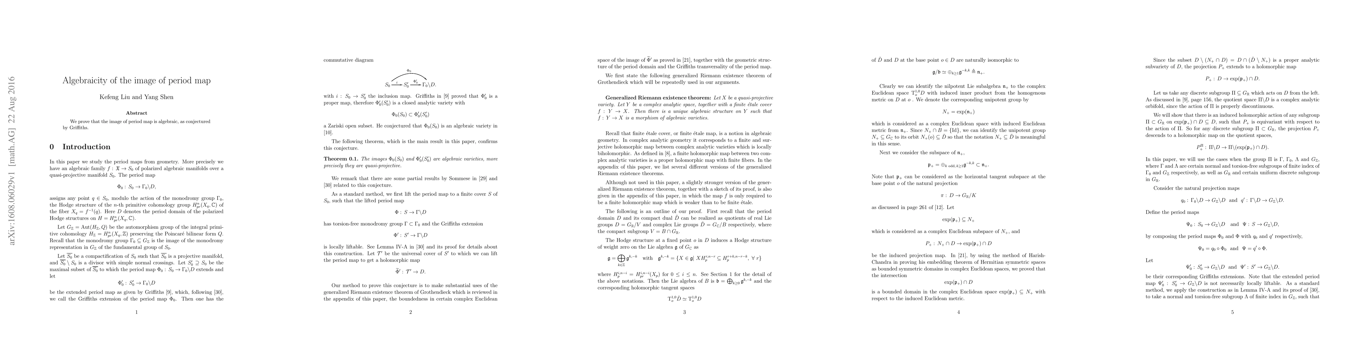 We prove that the image of period map is algebraic, as conjectured by Griffiths.