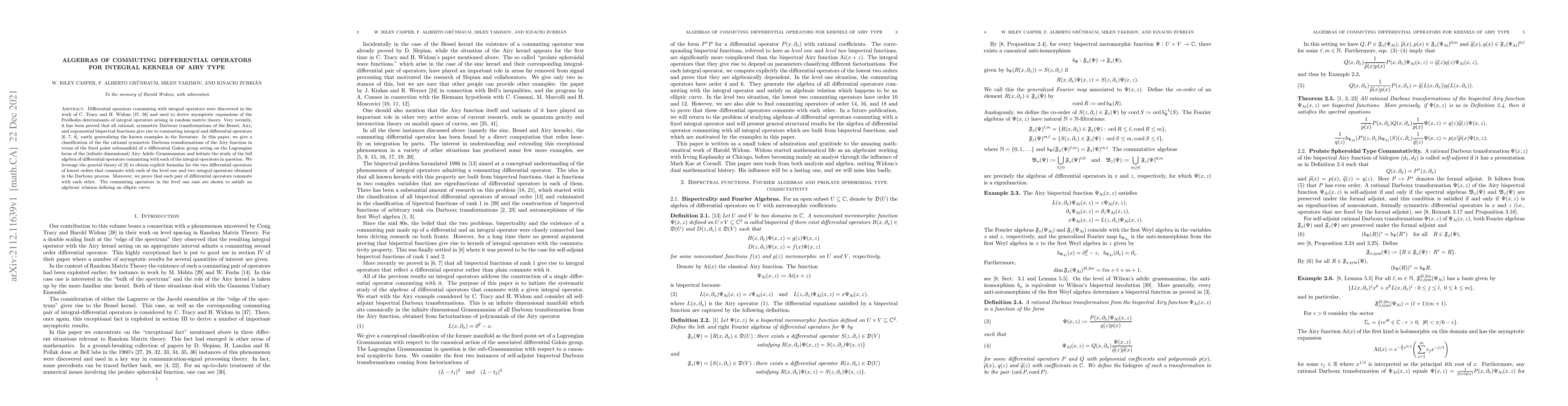Differential operators commuting with integral operators were discovered in the work of C. Tracy and H. Widom [37, 38] and used to derive asymptotic expansions of the Fredholm determinants of integral operators arising in random matrix theory. Very recently, it has been proved that all rational, symmetric Darboux transformations of the Bessel, Airy, and exponential bispectral functions give rise to commuting integral and differential operators [6, 7, 8], vastly generalizing the known examples in the literature. In this paper, we give a classification of the the rational symmetric Darboux transformations of the Airy function in terms of the fixed point submanifold of a differential Galois group acting on the Lagrangian locus of the (infinite dimensional) Airy Adelic Grassmannian and initiate the study of the full algebra of differential operators commuting with each of the integral operators in question. We leverage the general theory of [8] to obtain explicit formulas for the two differential operators of lowest orders that commute with each of the level one and two integral operators obtained in the Darboux process. Moreover, we prove that each pair of differential operators commute with each other. The commuting operators in the level one case are shown to satisfy an algebraic relation defining an elliptic curve.