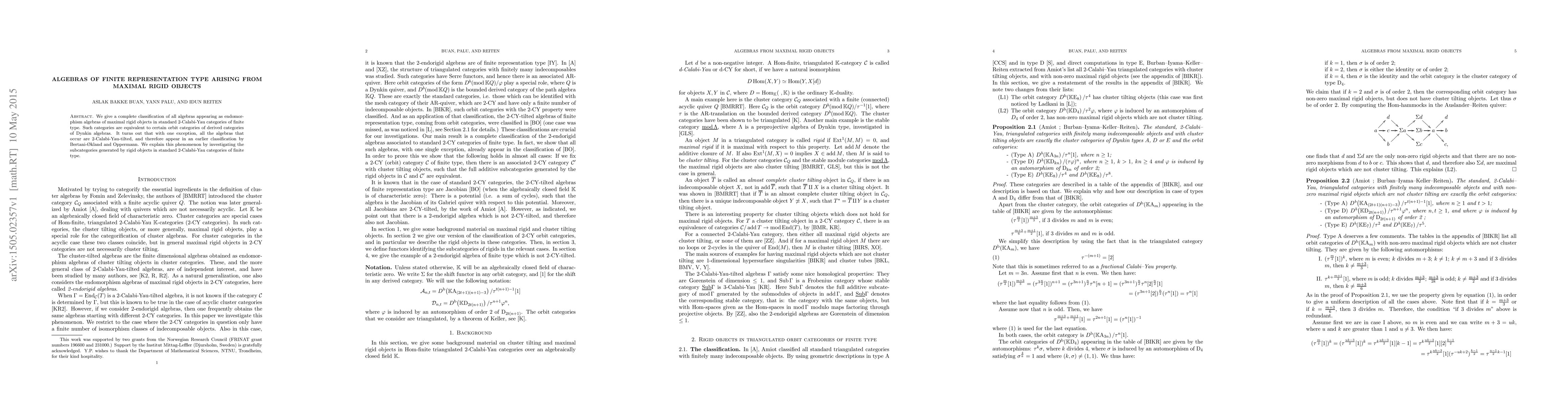 We give a complete classification of all algebras appearing as endomorphism algebras of maximal rigid objects in standard 2-Calabi-Yau categories of finite type. Such categories are equivalent to certain orbit categories of derived categories of Dynkin algebras. It turns out that with one exception, all the algebras that occur are $2$-Calabi-Yau-tilted, and therefore appear in an earlier classification by Bertani-{\O}kland and Oppermann. We explain this phenomenon by investigating the subcategories generated by rigid objects in standard 2-Calabi-Yau categories of finite type.