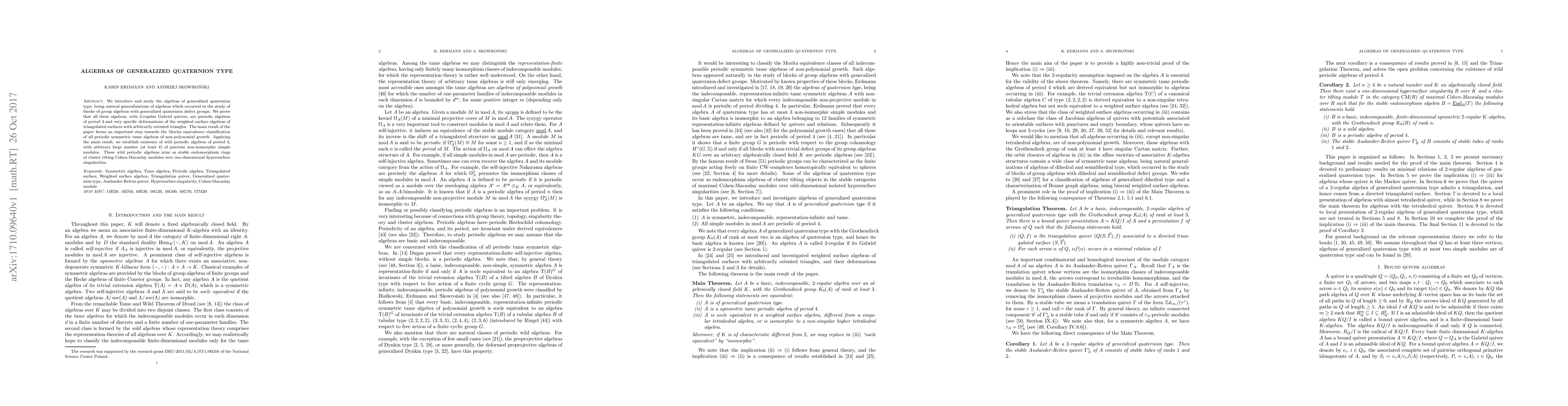 This paper introduces generalized quaternion type algebras, proving they are periodic with period 4 and specific deformations of weighted surface algebras. It contributes to the classification of periodic symmetric tame algebras, establishing the existence of wild periodic algebras with multiple non-isomorphic simple modules.