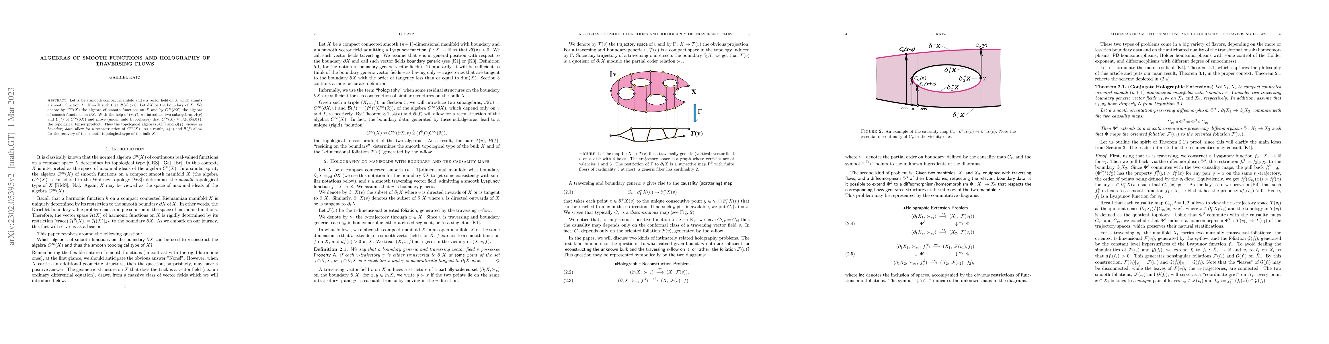 This paper explores the relationship between algebras of smooth functions on a compact manifold and its boundary, demonstrating that the topological tensor product of two subalgebras derived from a vector field and a function allows for the reconstruction of the smooth functions on the manifold, thus revealing the holography of traversing flows.